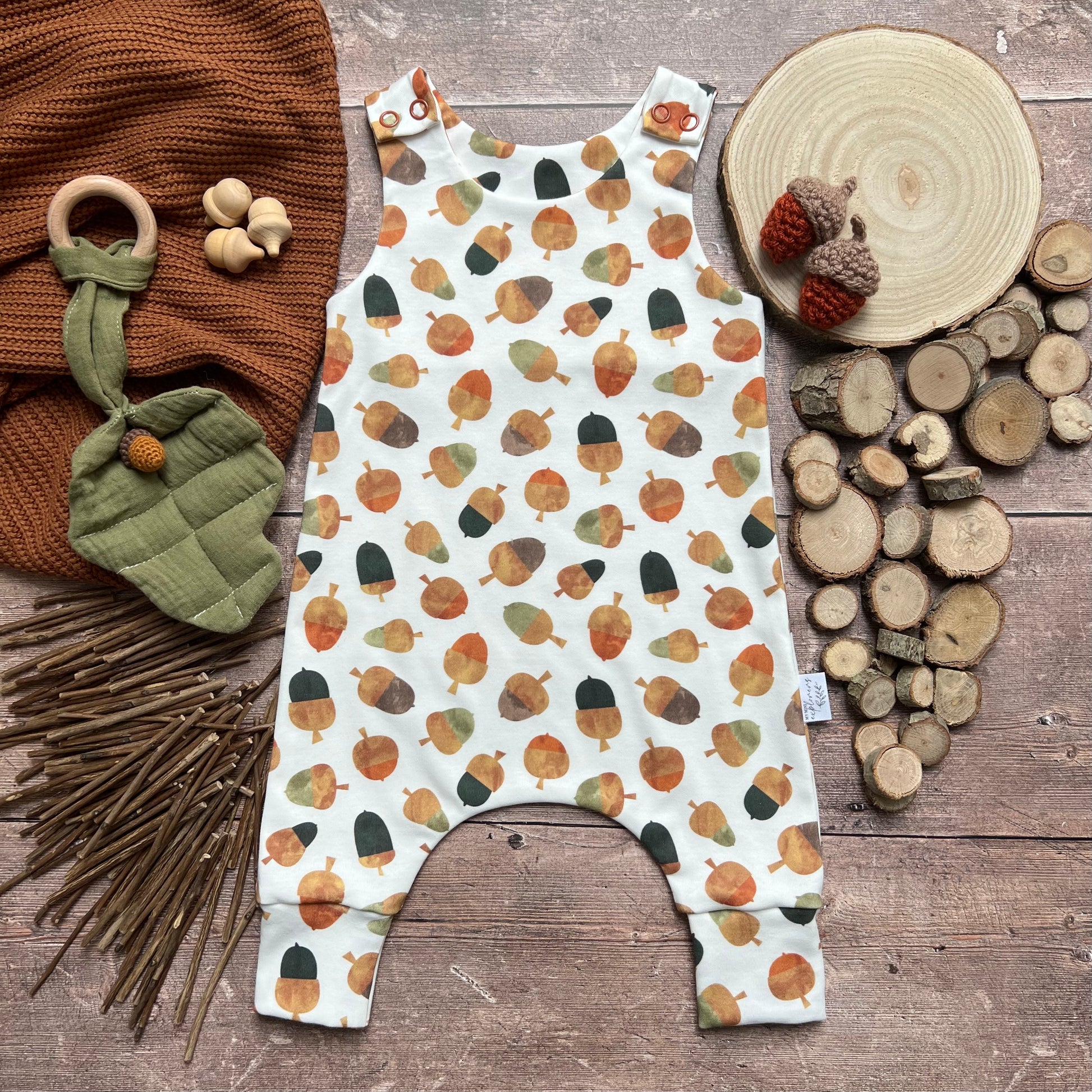 Handmade leggings, rompers, dresses and accessories - All items that I hand make are made from 95% organic cotton / 5% elastane, giving your mini explorers lots of room to explore and stretch. The only exceptions to this are our blankets which are 100% polyester making them super soft and cosy.