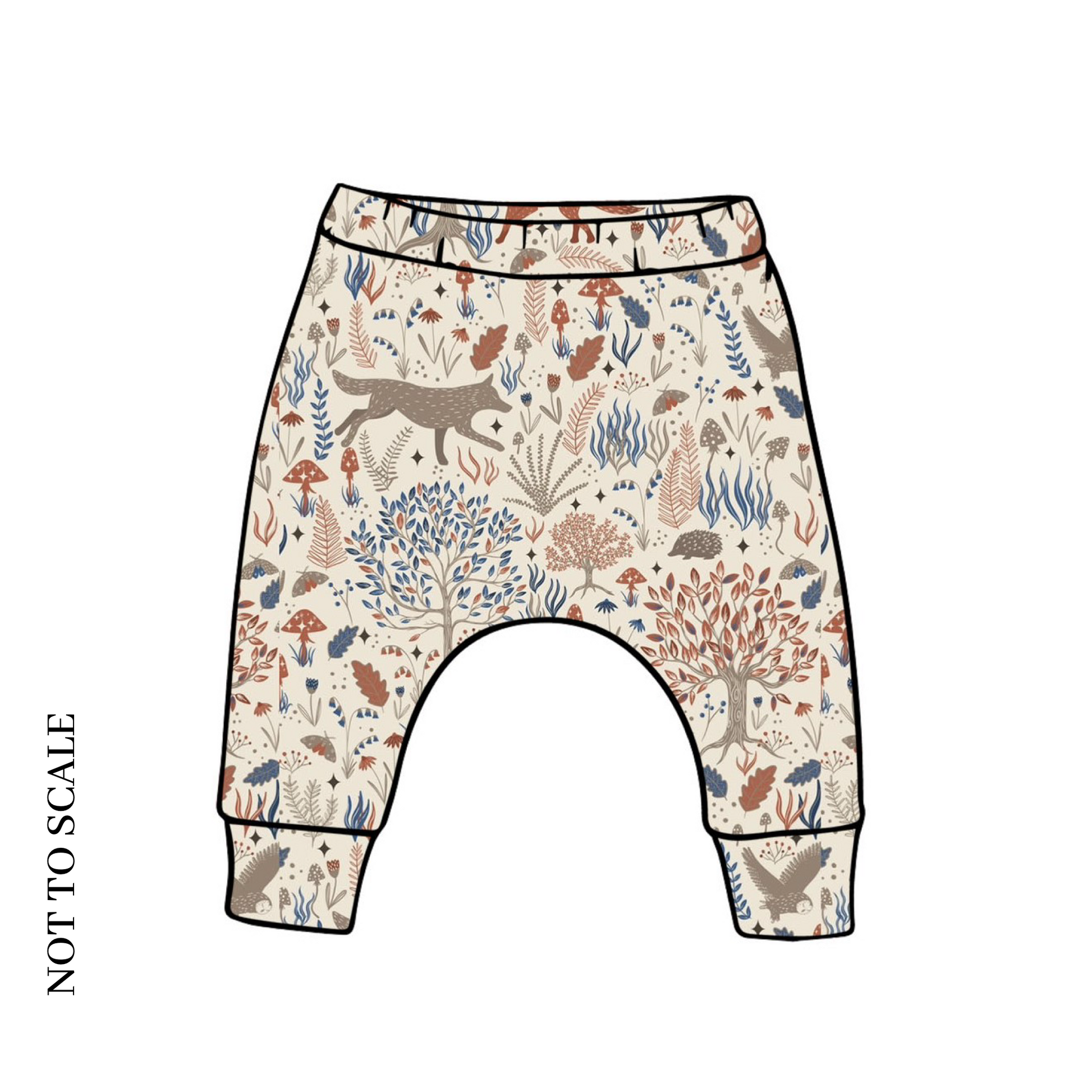 All harems feature a no-fold waistband and are cut for both cloth and disposable nappies, giving your little one the free to wriggle, crawl or run about. Sizing guides can be found here.