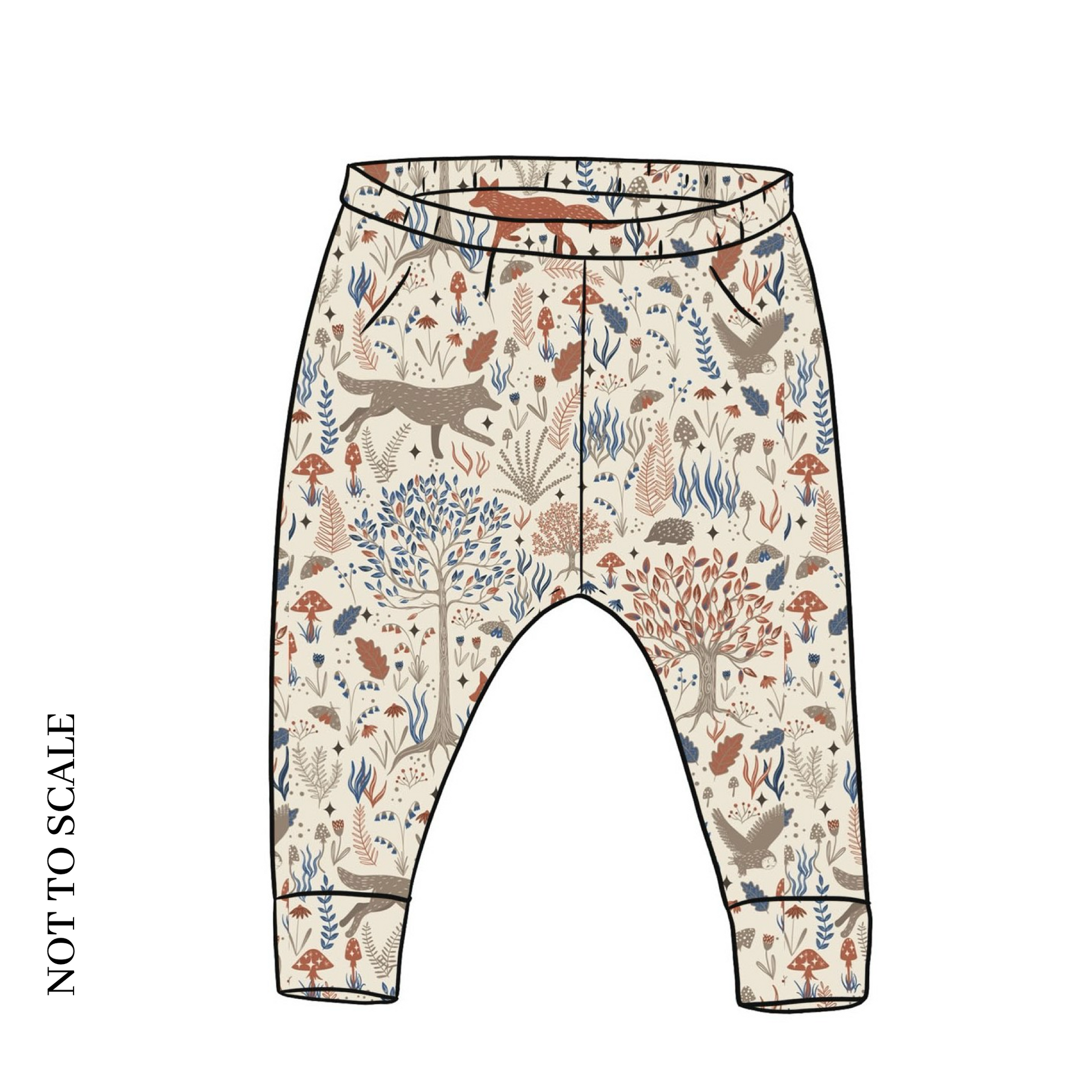All leggings feature a no-fold waistband. Leggings are a slimmer fit than harems, so are not as roomy for those using cloth nappies - please bear this in mind when ordering. Sizing guides can be found here.