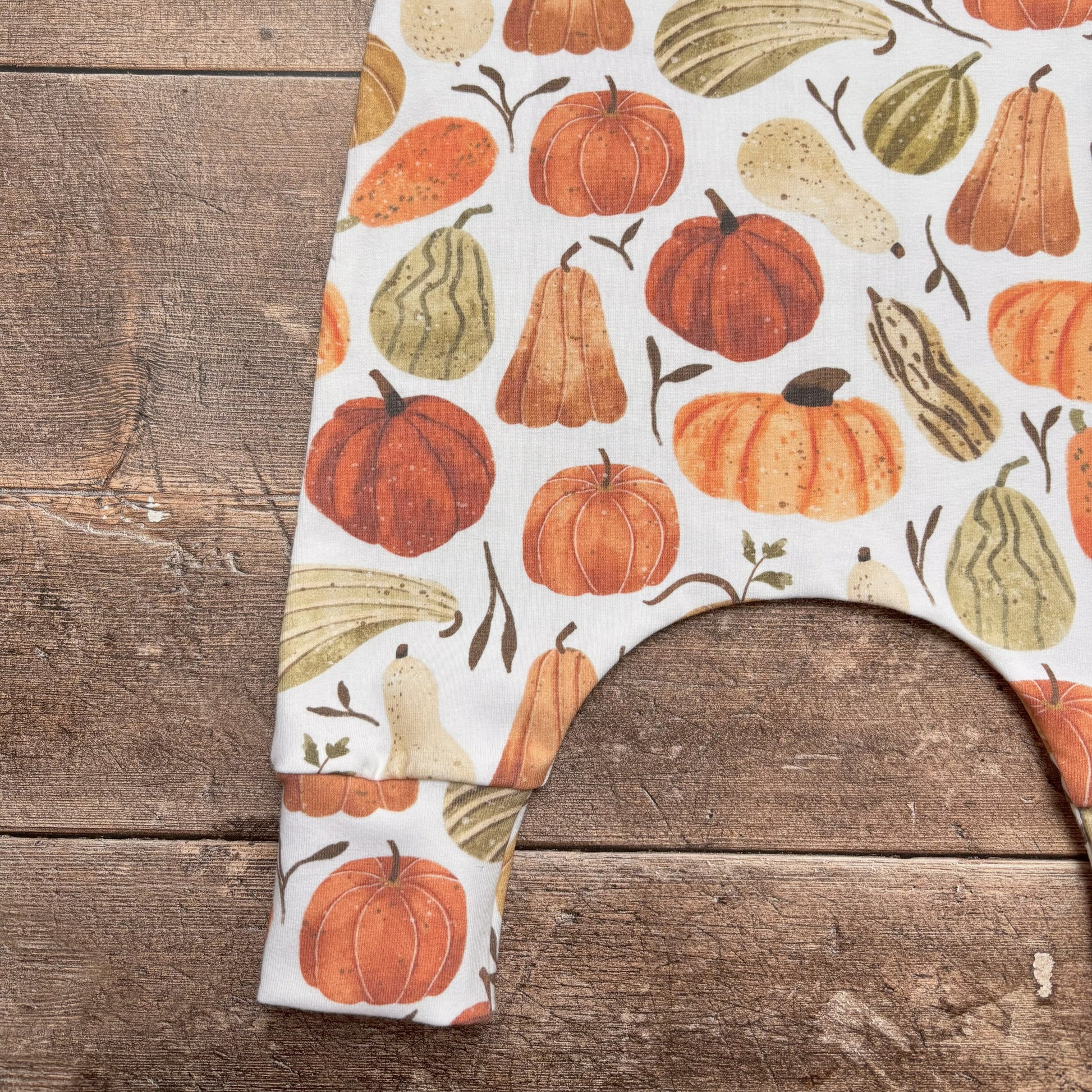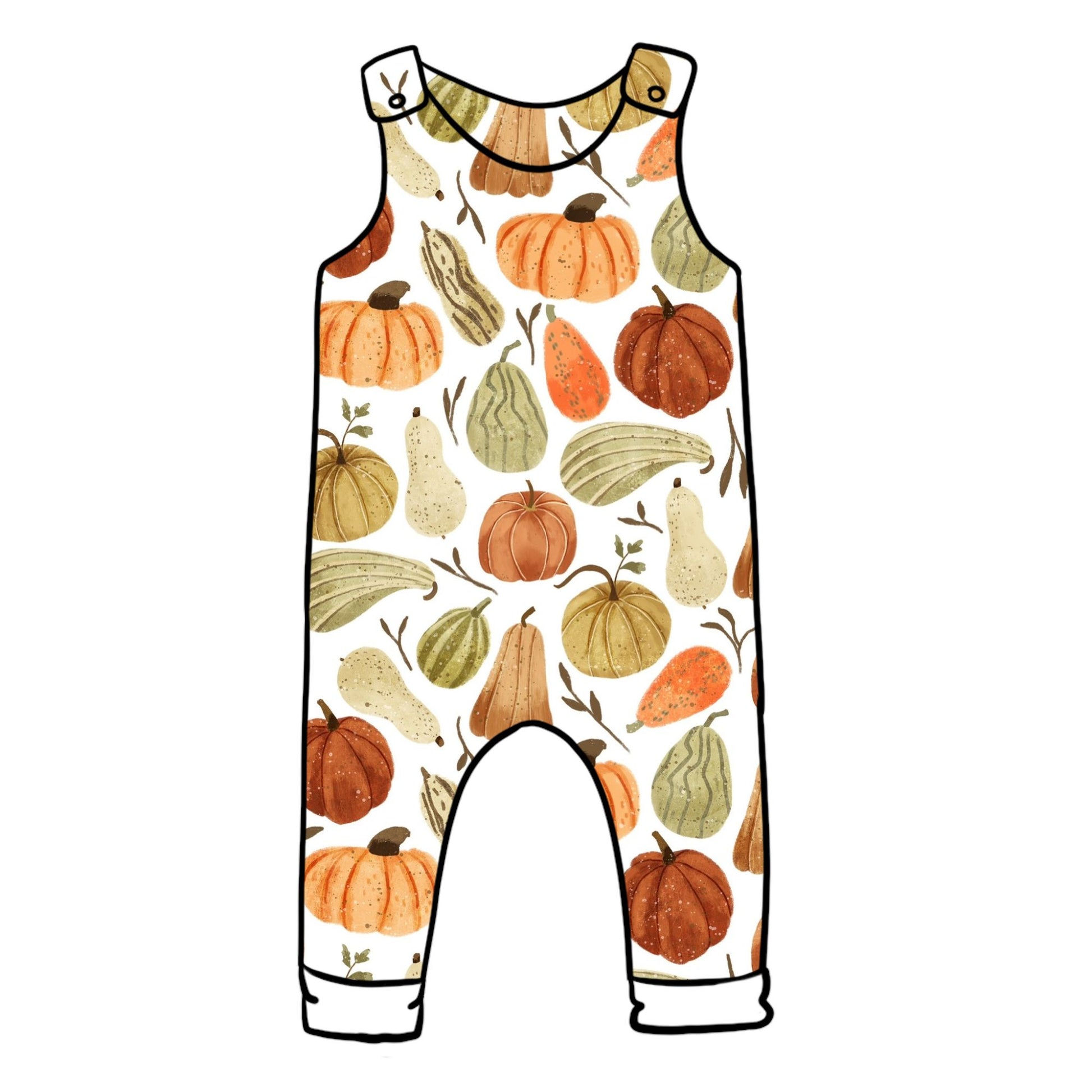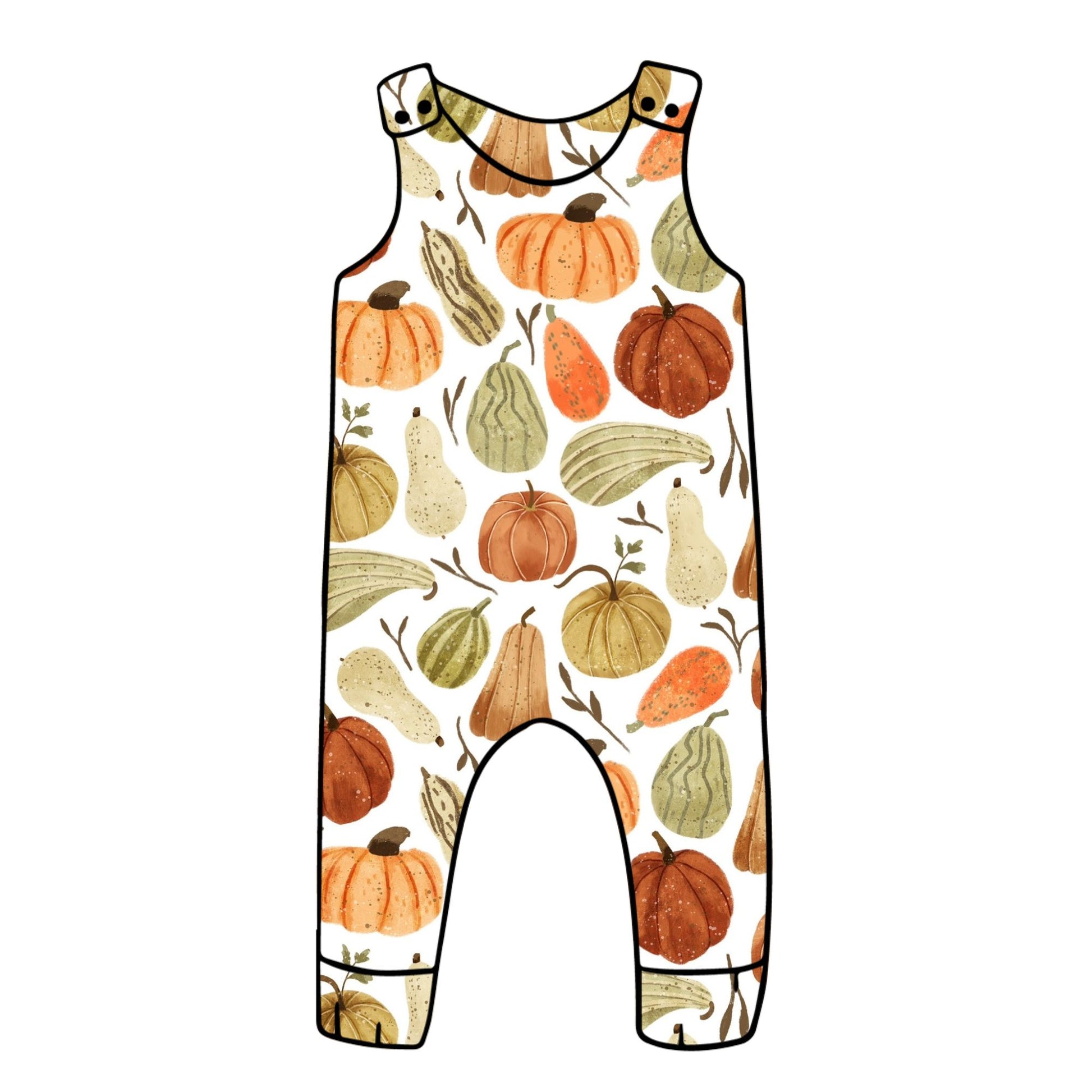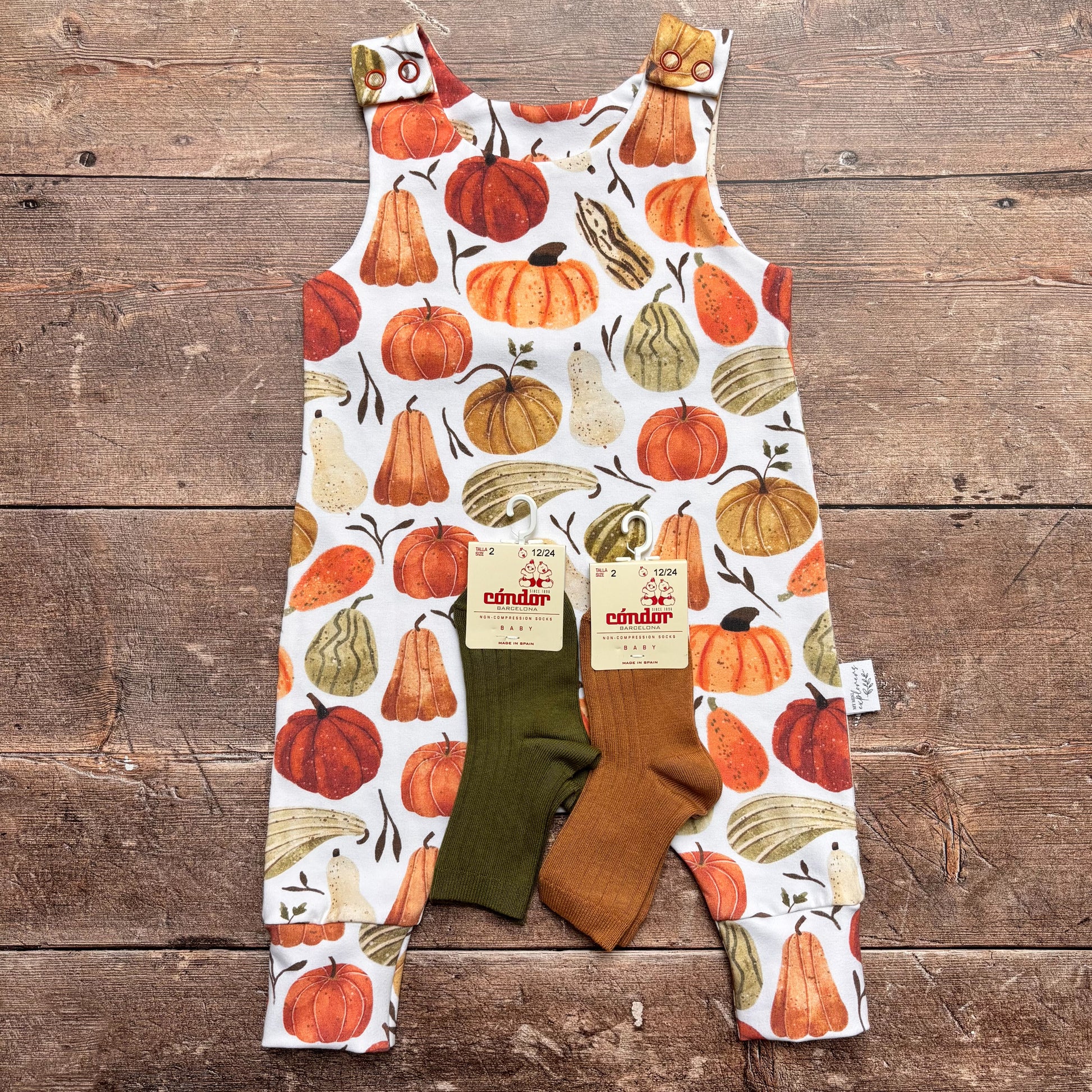 Perfect for autumn adventures and cosy days, our Autumn Squashes print Baby & Children’s Full Length Romper combines comfort and seasonal style.