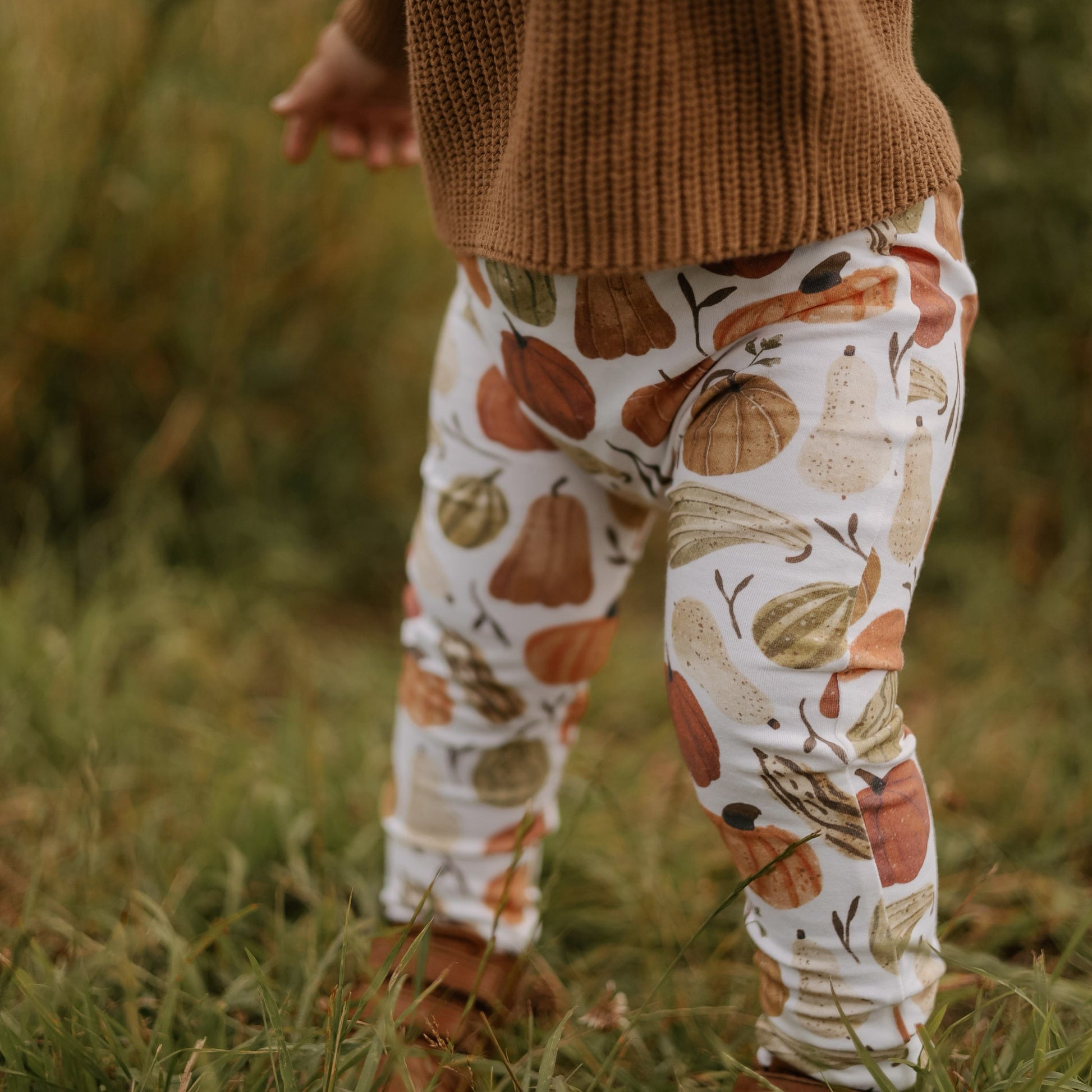 Made from soft, breathable organic cotton, these relaxed-fit baby trousers feature our Autumn Squashes print — a hand-drawn design of pumpkins, gourds, and autumn leaves in warm, earthy tones. Perfect for pumpkin picking, autumn walks, and cosy playtime, these baby trousers are a comfy, practical addition to any little one’s seasonal wardrobe.