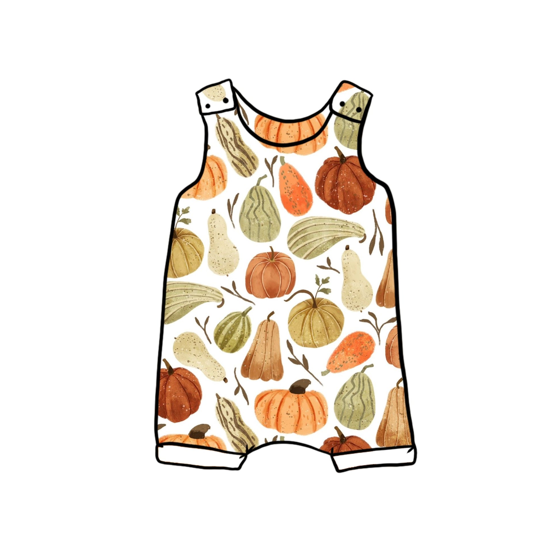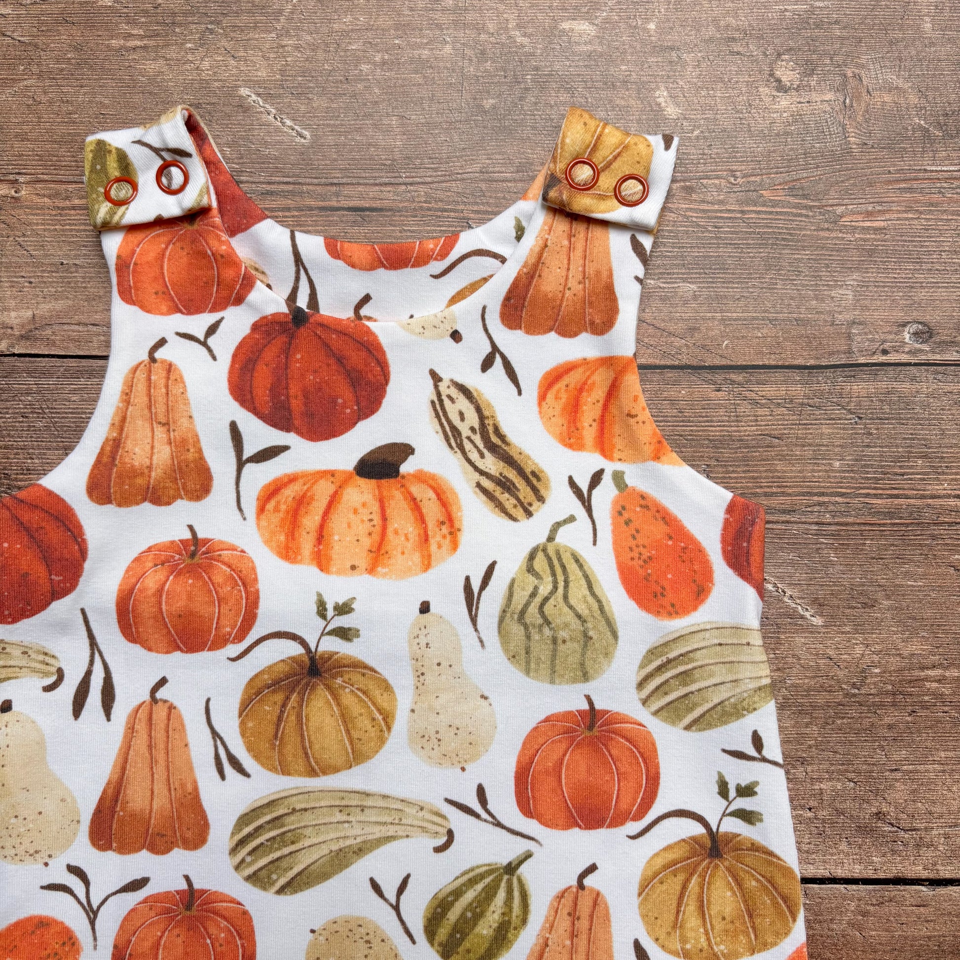 Let your little one play, explore, and relax in cosy seasonal style with our Autumn Squashes print Baby & Children’s Short Romper.