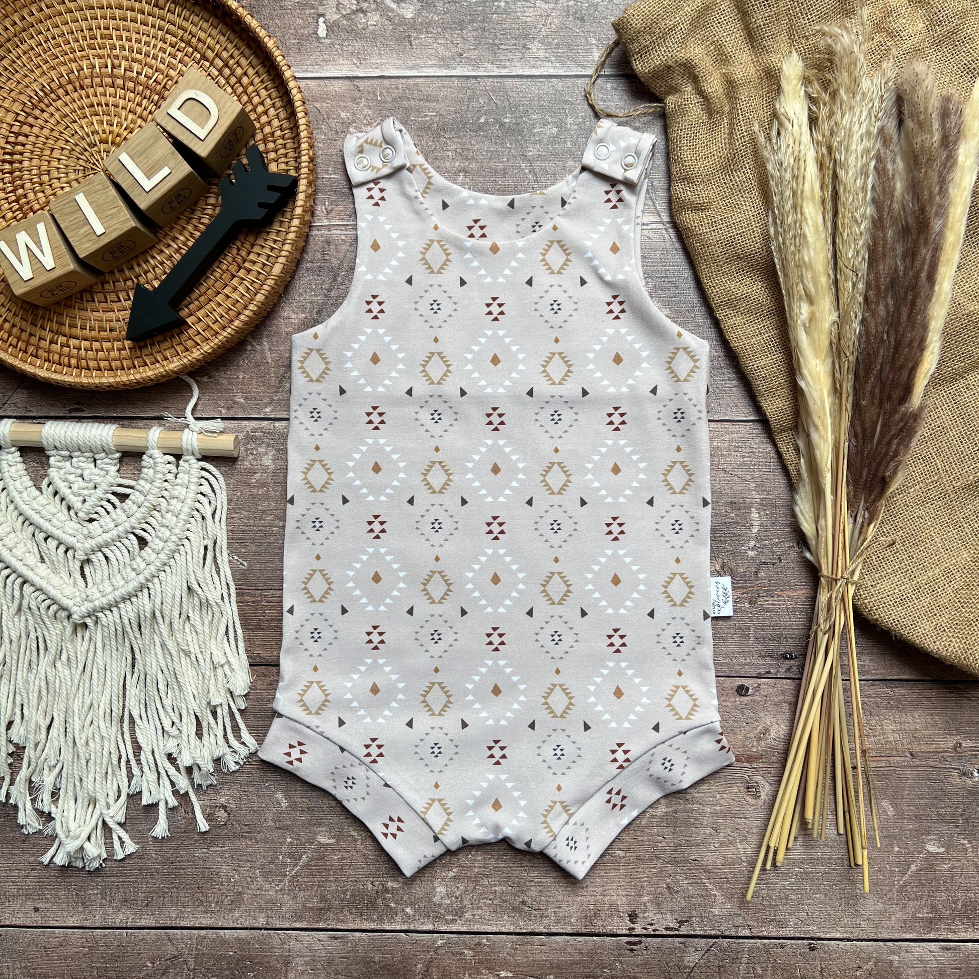 Beautifully handmade from organic cotton jersey knit. All rompers feature metal fasteners at each shoulder. Rompers are cut for both cloth and disposable nappies, giving your little one the freedom to wriggle, crawl or run about.