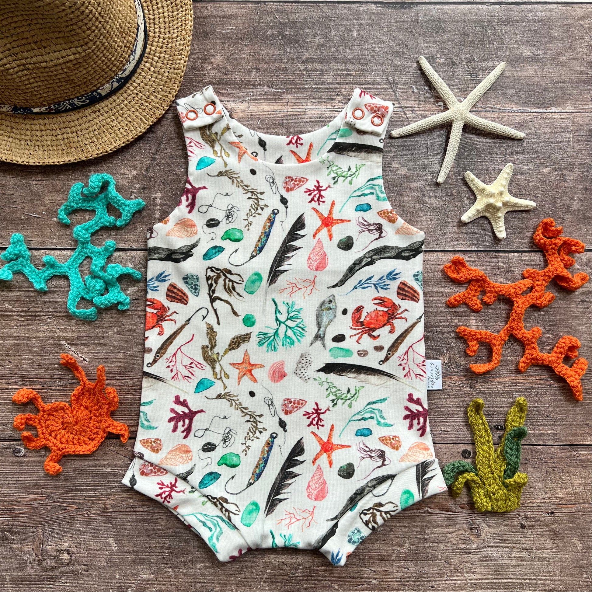 Beautifully handmade from organic cotton jersey knit. All rompers feature metal fasteners at each shoulder. Rompers are cut for both cloth and disposable nappies, giving your little one the freedom to wriggle, crawl or run about.