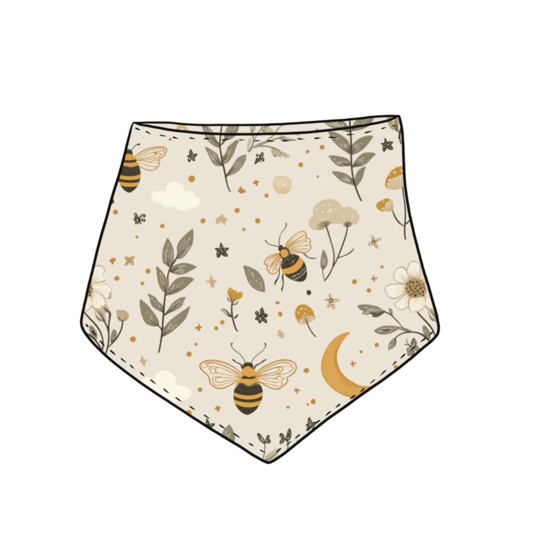 Keep little outfits clean and dry in style with our Bees & Moon print Dribble Bib.