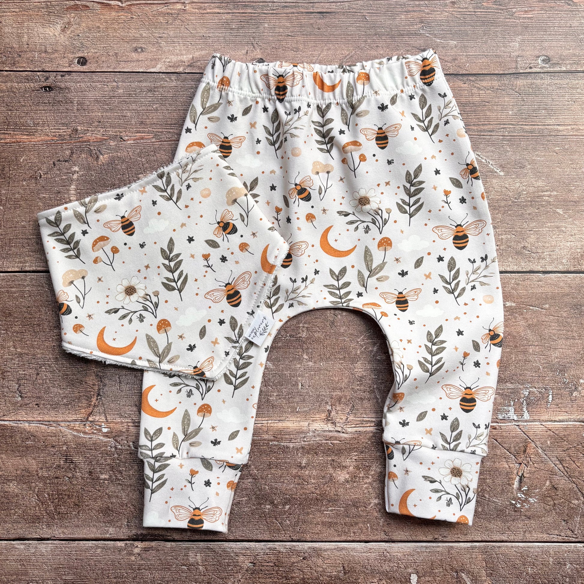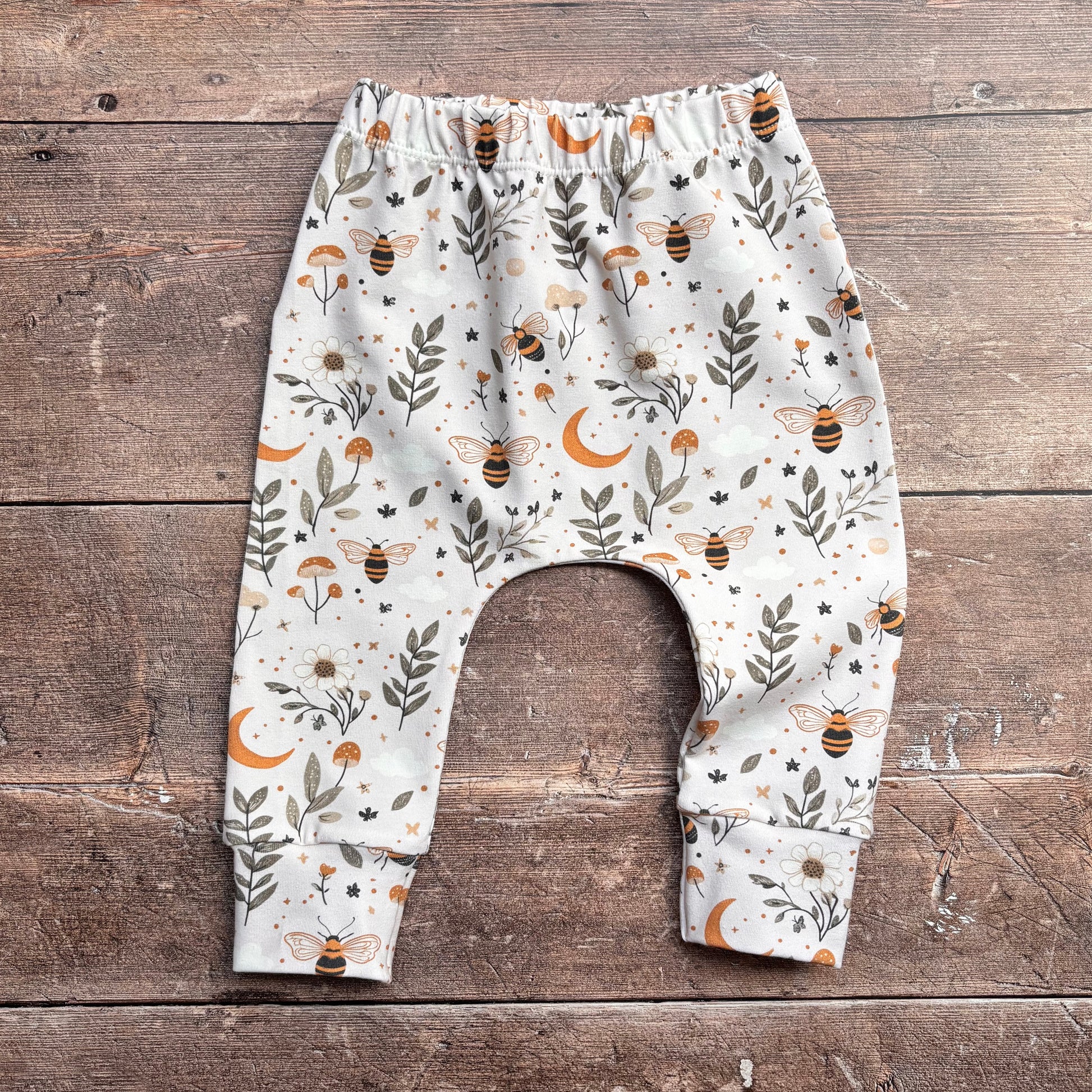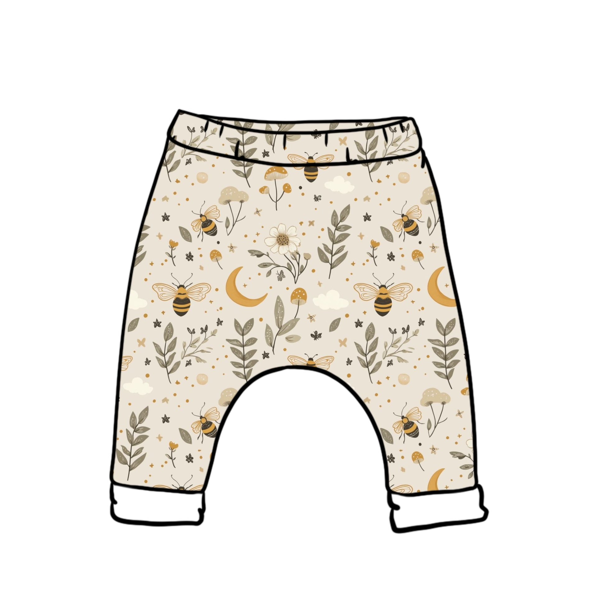 Let little ones move in comfort with our Bees & Moons Baby & Children's Harem Trousers. Made from soft, breathable organic cotton, these relaxed-fit trousers feature a charming design of delicate bees, crescent moons, and trailing leaves in gentle, nature-inspired tones. Perfect for everyday adventures and playtime.