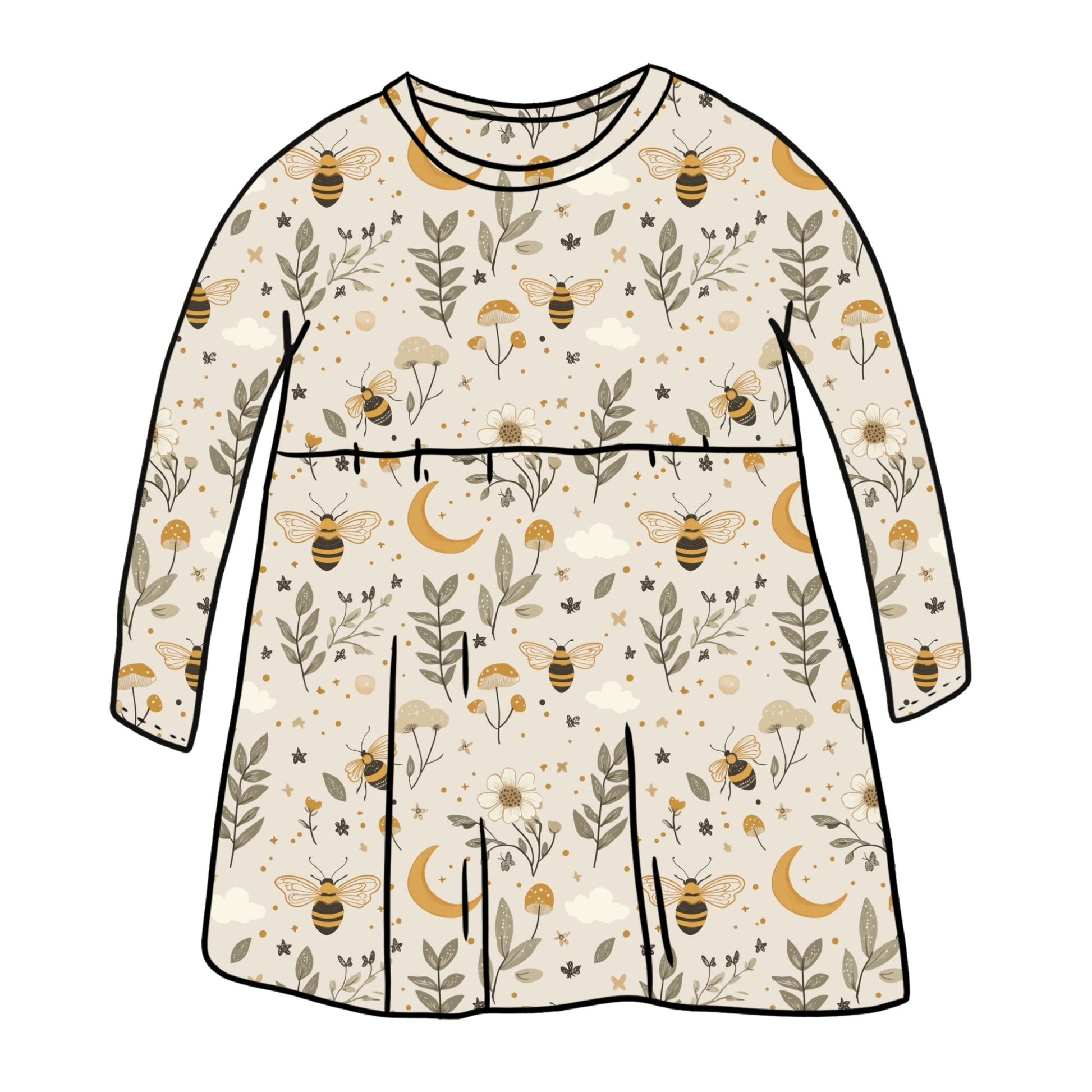 Pretty, practical, and perfect for little ones, our Bees & Moon print Baby and Children's Long Sleeve Dress is designed for both everyday wear and special occasions.