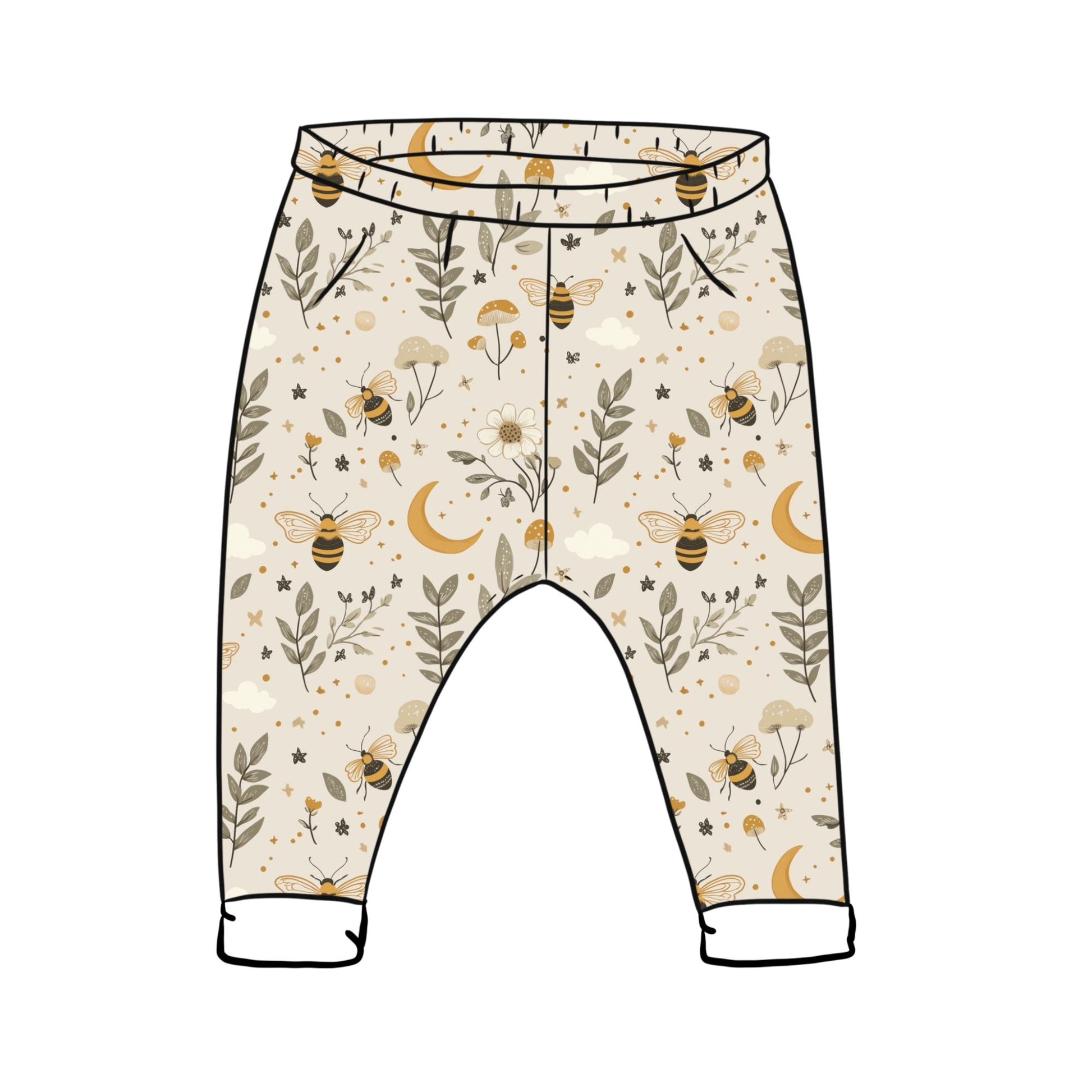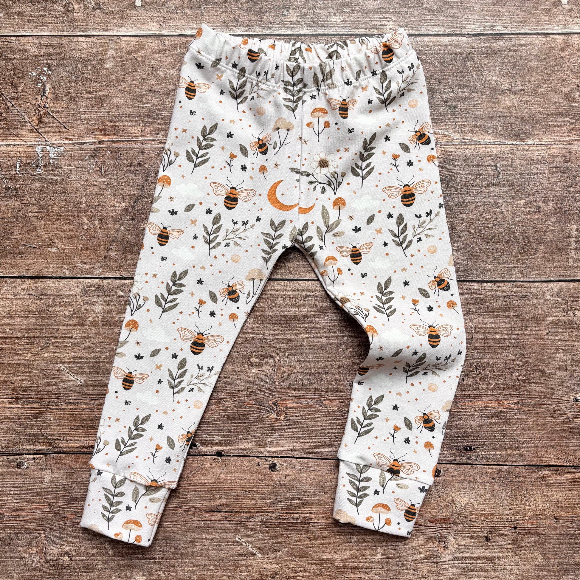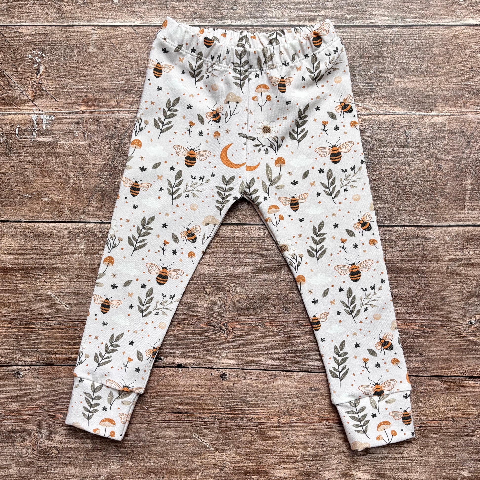 Let little ones explore in comfort and style with our Bees & Moons print Baby and Children's Legging Trousers. Made from soft, breathable organic cotton, these leggings feature a charming nature-inspired design with delicate bees, crescent moons, and trailing leaves in gentle, earthy tones. Perfect for everyday adventures, outdoor play, and relaxed days at home, these leggings combine comfort with whimsical celestial charm.