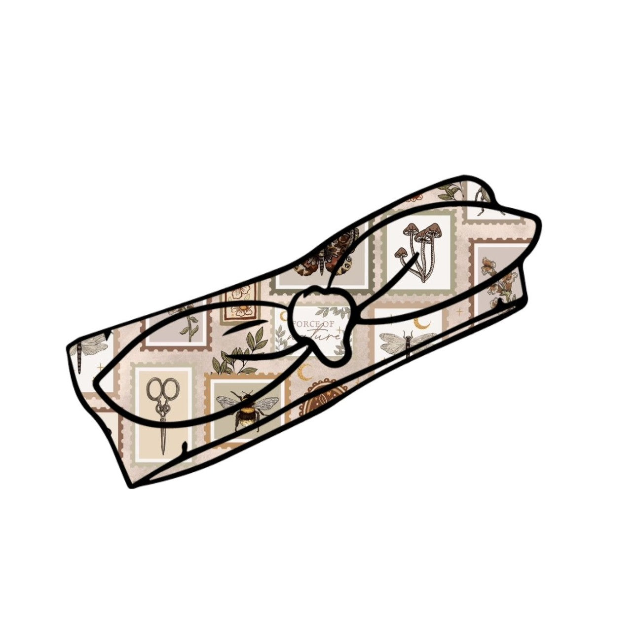 Add a touch of countryside charm with our Botany Stamps Baby & Children's Knot Bow Headband. Made from soft organic cotton, it features a vintage-inspired hand-drawn print of bees, butterflies, mushrooms, and botanical elements, in nature inspired tones — the perfect matching accessory for babies and little ones.