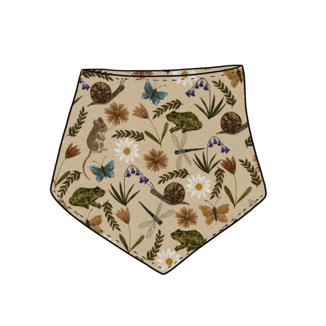 Keep little outfits clean and dry in style with our Busy Meadow print Dribble Bib.