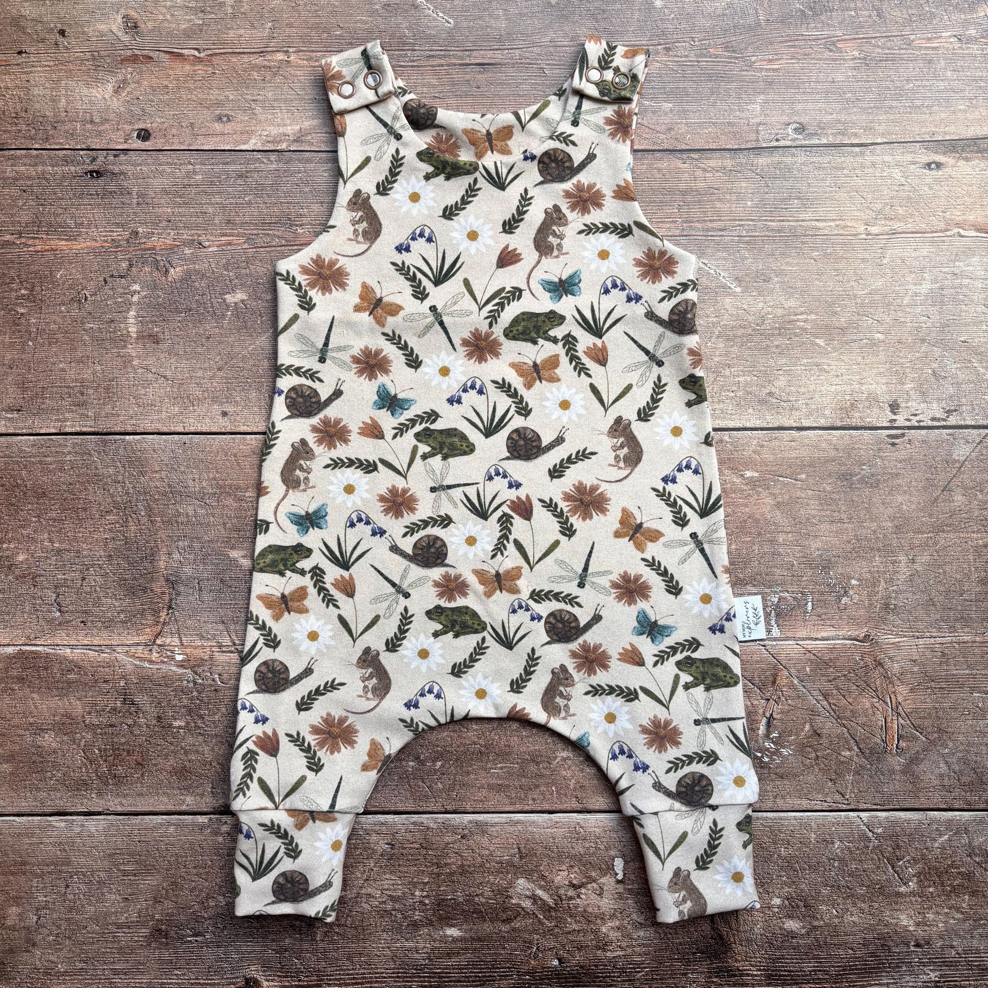 Let your little one play, explore, and relax in style with our Busy Meadow print Baby & Children's Full Length Romper. Featuring a whimsical meadow print with woodland creatures, wildflowers, and butterflies, it’s perfect for outdoor adventures, playdates, or relaxed days at home.
