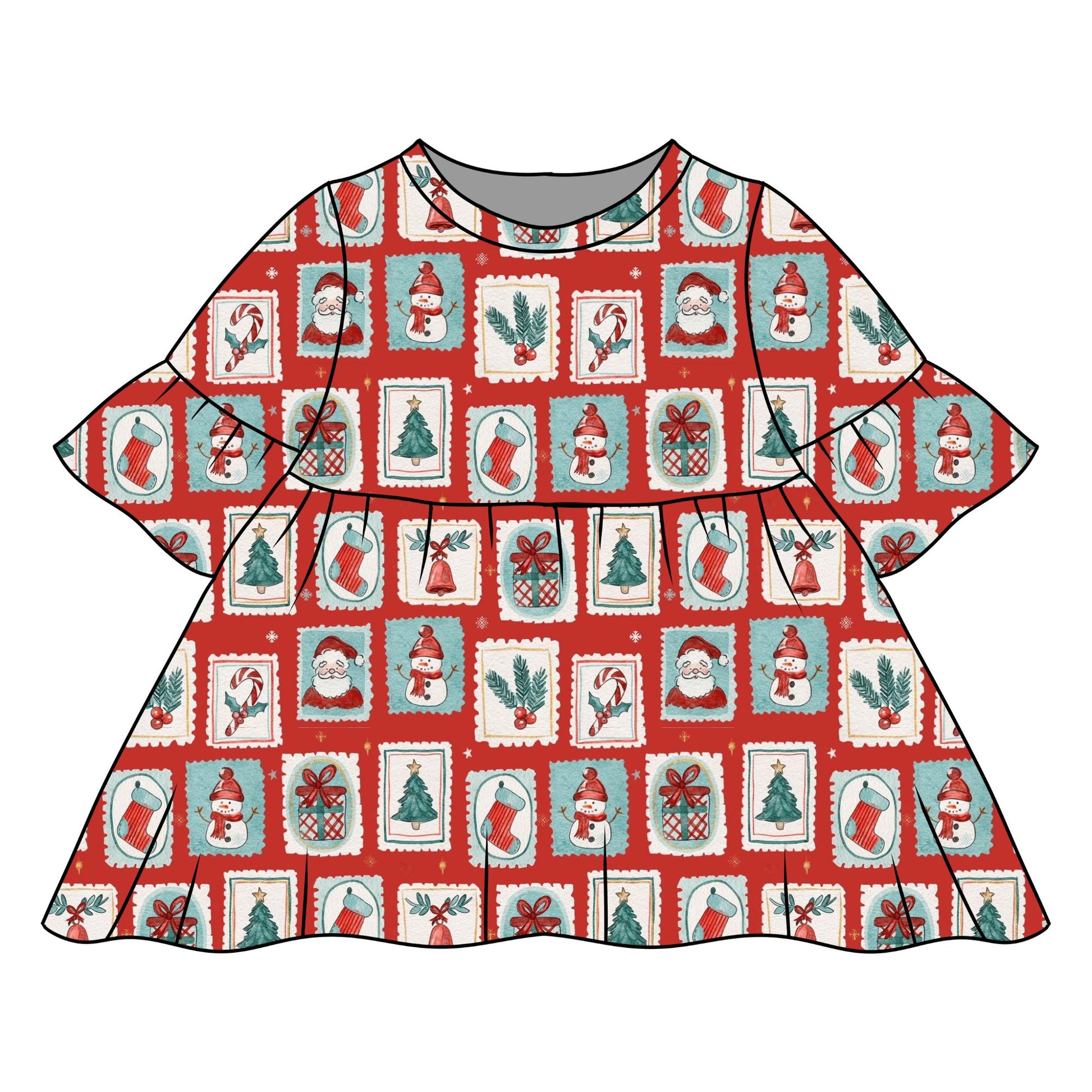Christmas Stamps Child & Baby Frill Sleeve Dress