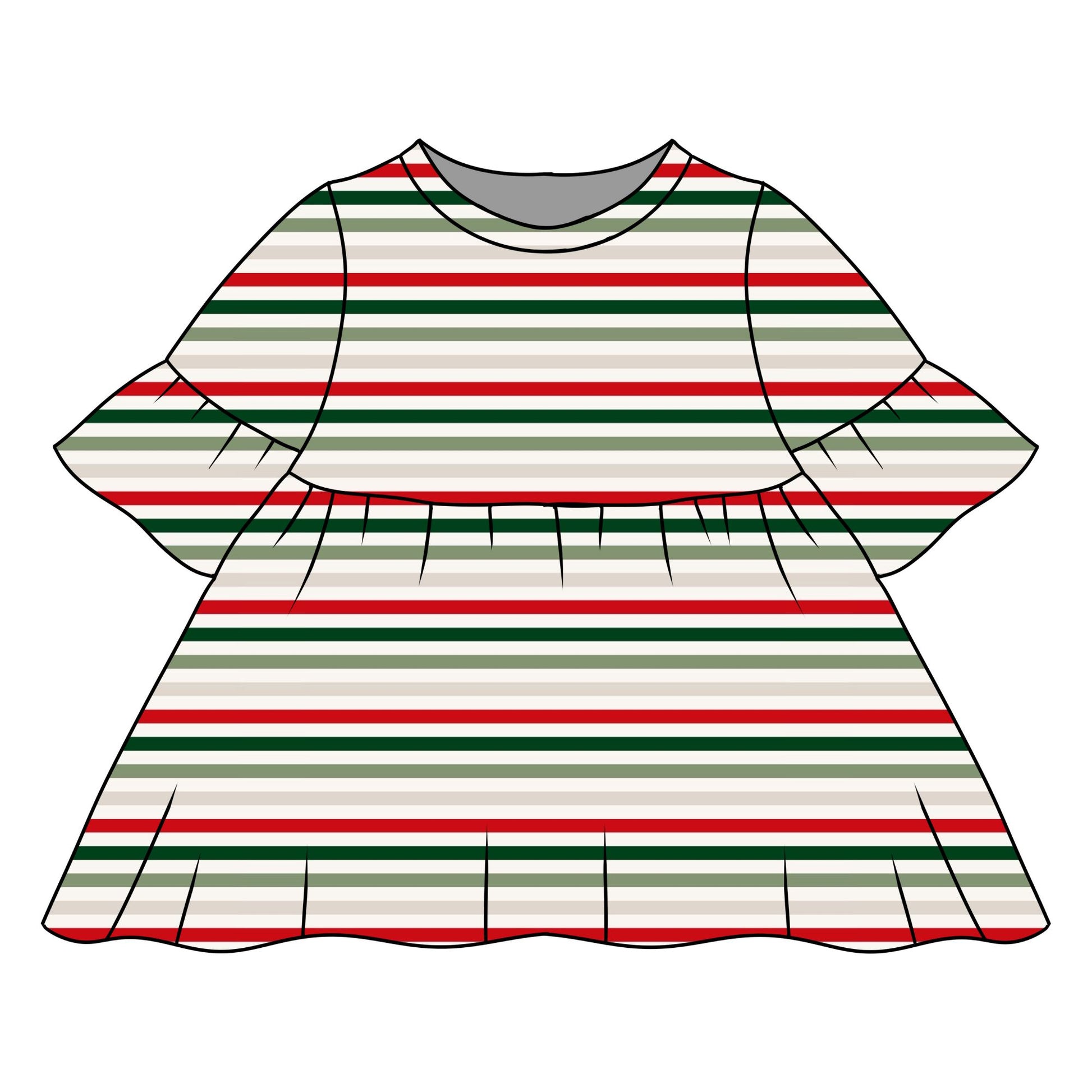 Christmas Stripes Child & Baby Frill Sleeve Dress