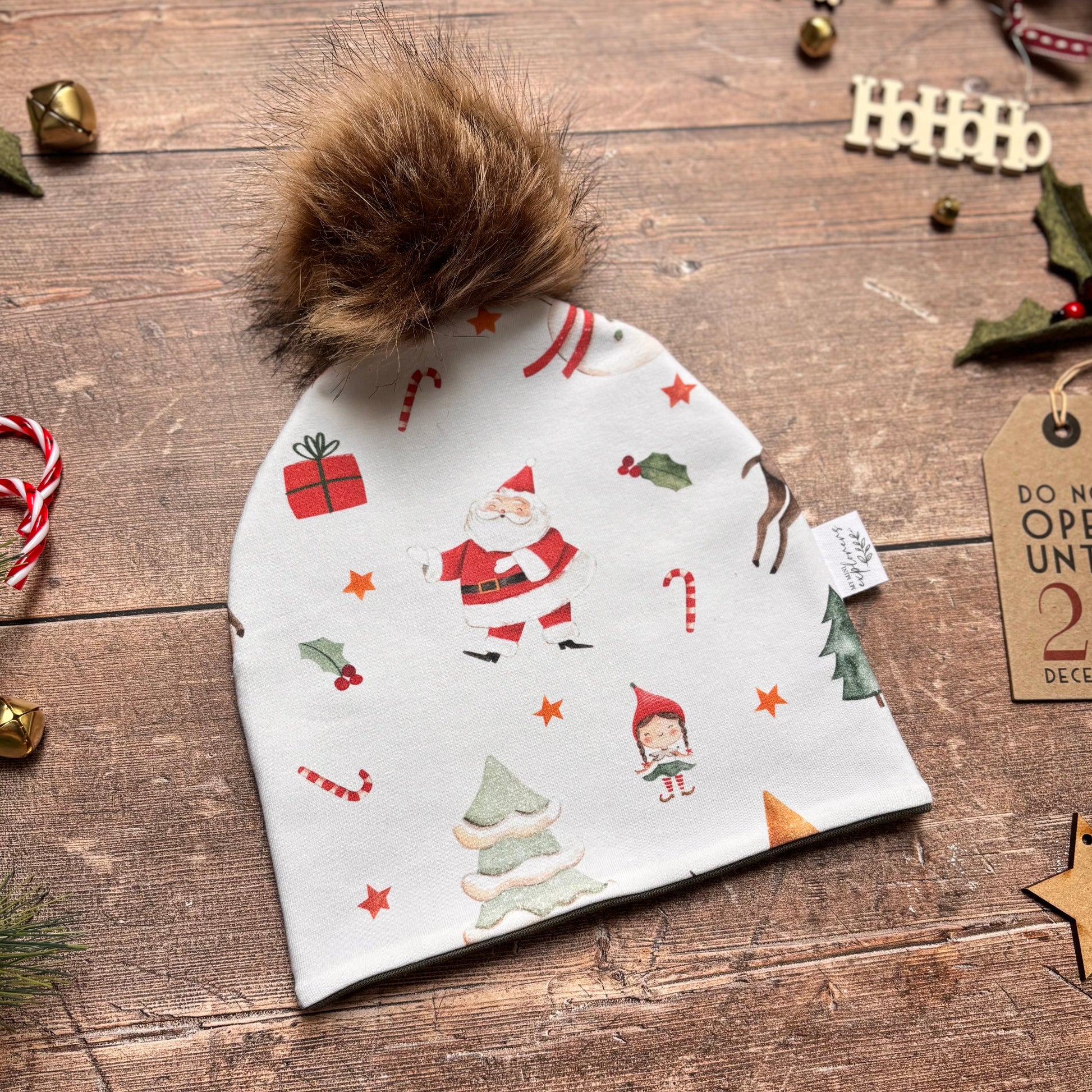 Handmade from soft cotton jersey. The inside is made from the softest rib knit and can be colour co-ordinated. Topped with faux fur detachable Pom Pom.
