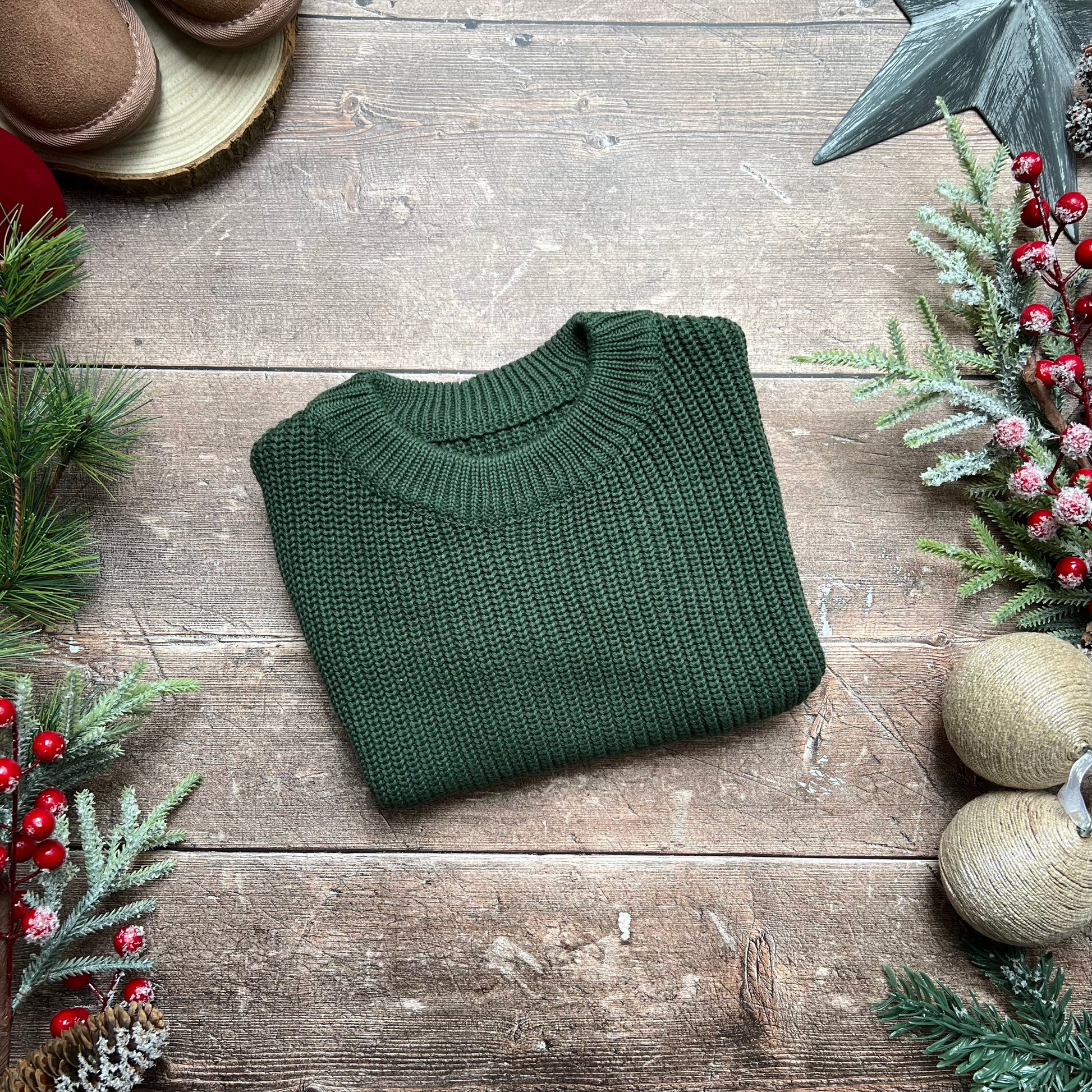 Chunky Knit Oversized Sweater - Forest Green 4-5 years