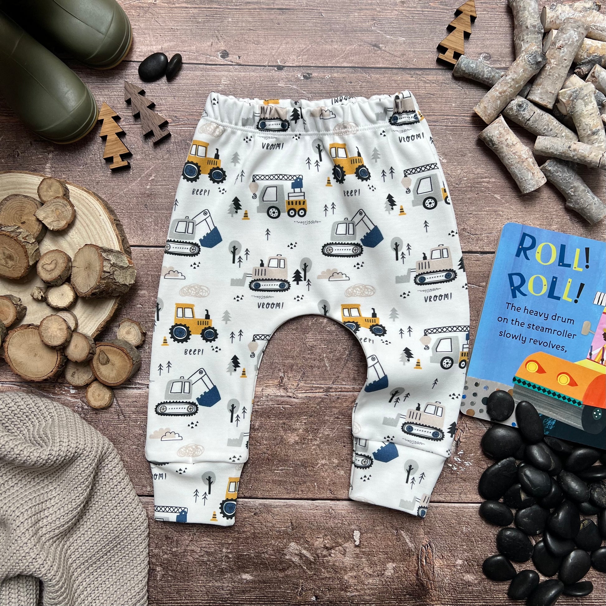All harems feature a no-fold waistband and are cut for both cloth and disposable nappies, giving your little one the free to wriggle, crawl or run about. Sizing guides can be found here.