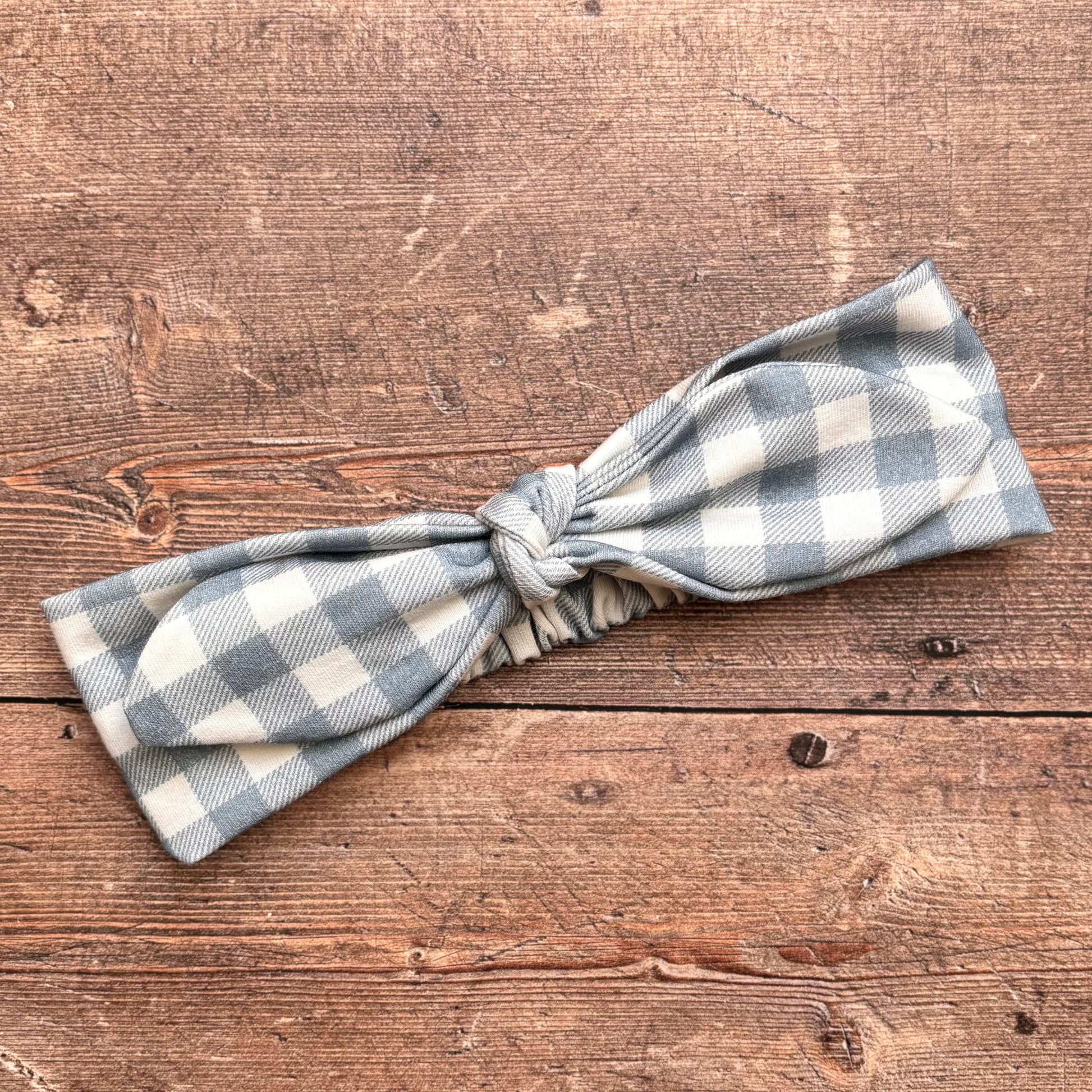 Denim Gingham Knot Bow Headband
