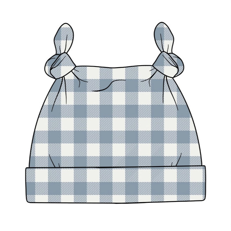 Denim Gingham Knotted Hat
