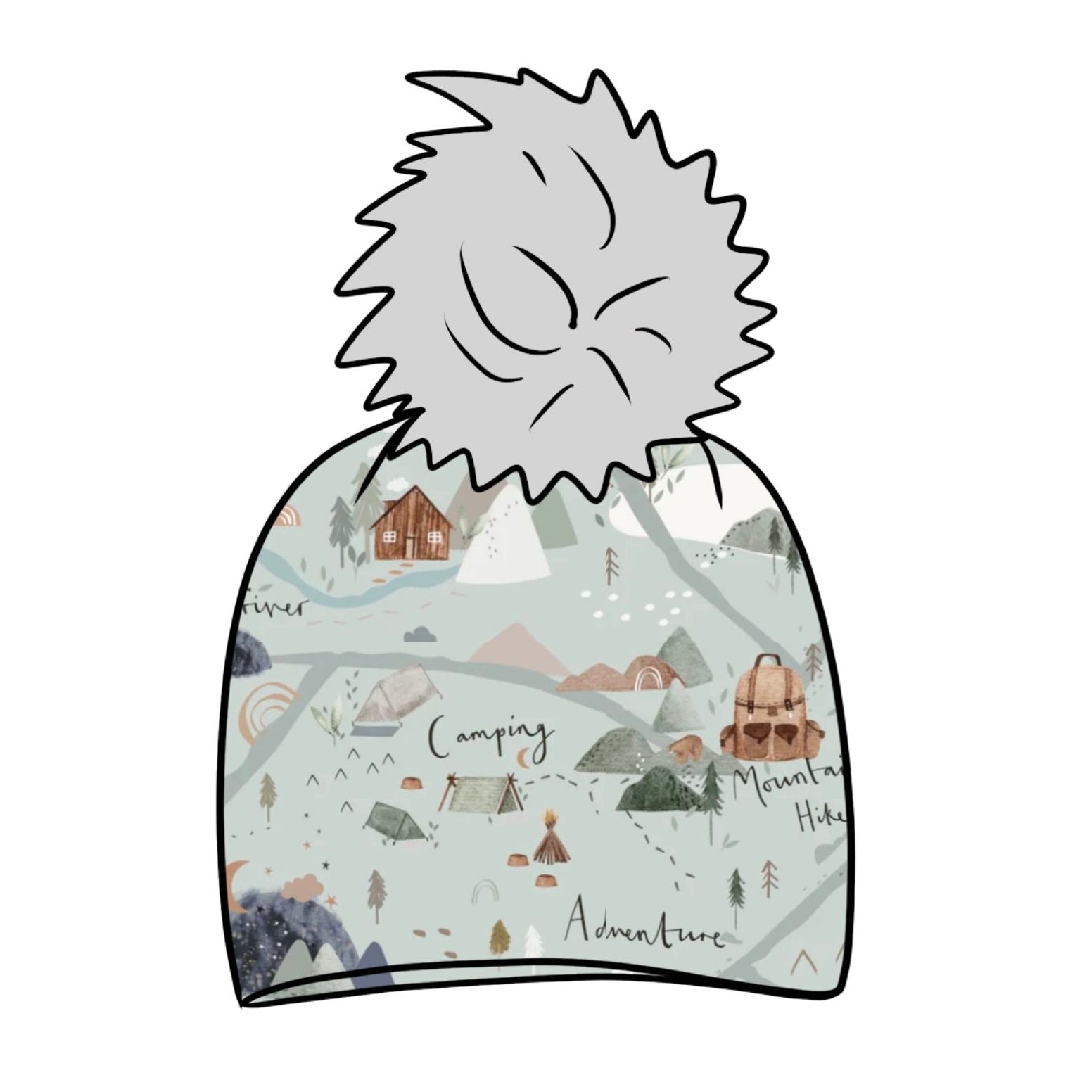 Featuring our adventure-inspired Explorer print with rivers, woodlands, and mountain landscapes in soft, earthy tones, this adorable hat is perfect for keeping little heads warm on outdoor adventures. Designed to be reversible (pom only on patterned side), it offers two looks in one — making it easy to mix and match with multiple outfits.