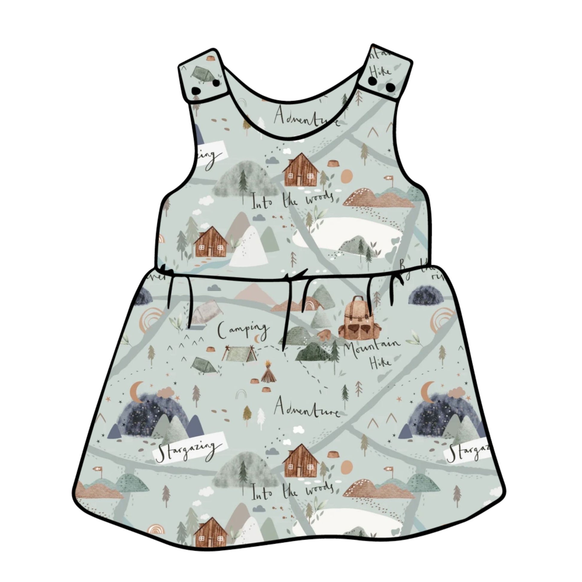 Add a sense of adventure to your little one’s wardrobe with our Explorer Baby and Children’s Pinafore Dress. Made from soft, organic cotton, this adorable dress features our playful, nature-inspired Explorer print — filled with rivers, woodland trails, and mountain landscapes in gentle, earthy tones. Perfect for outdoor adventures, family outings, and everyday exploring.