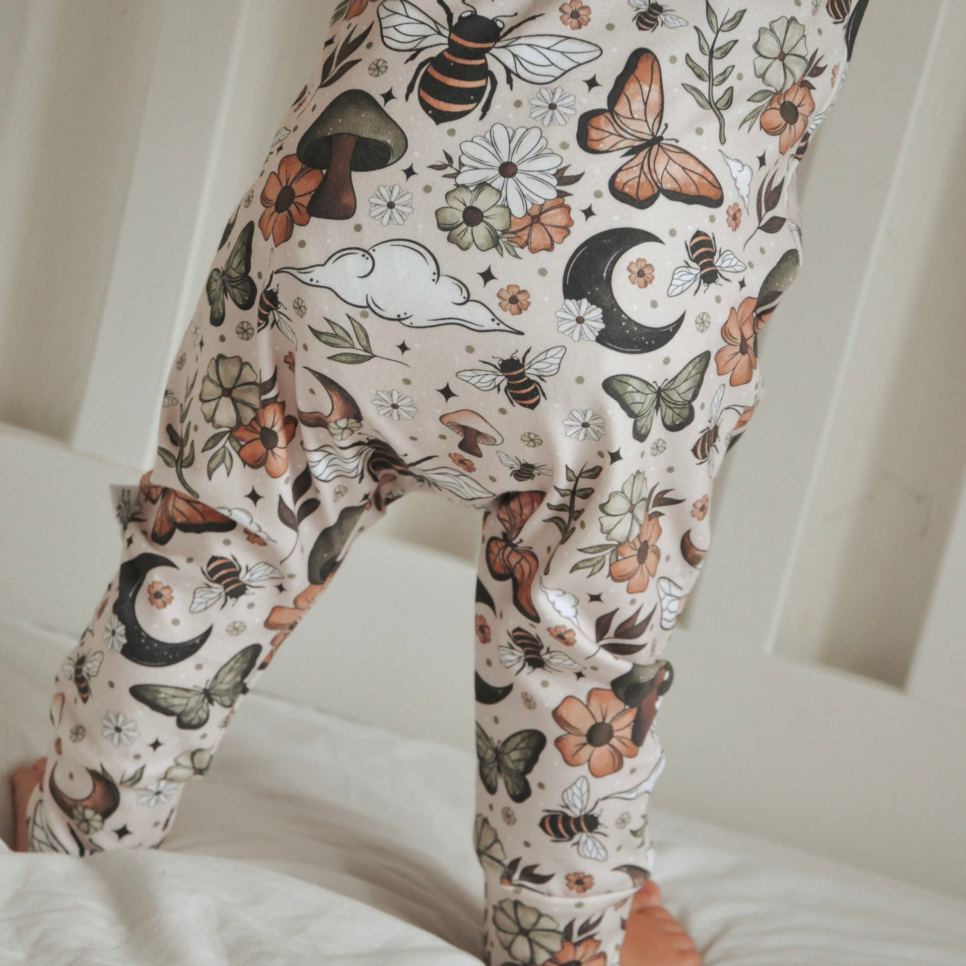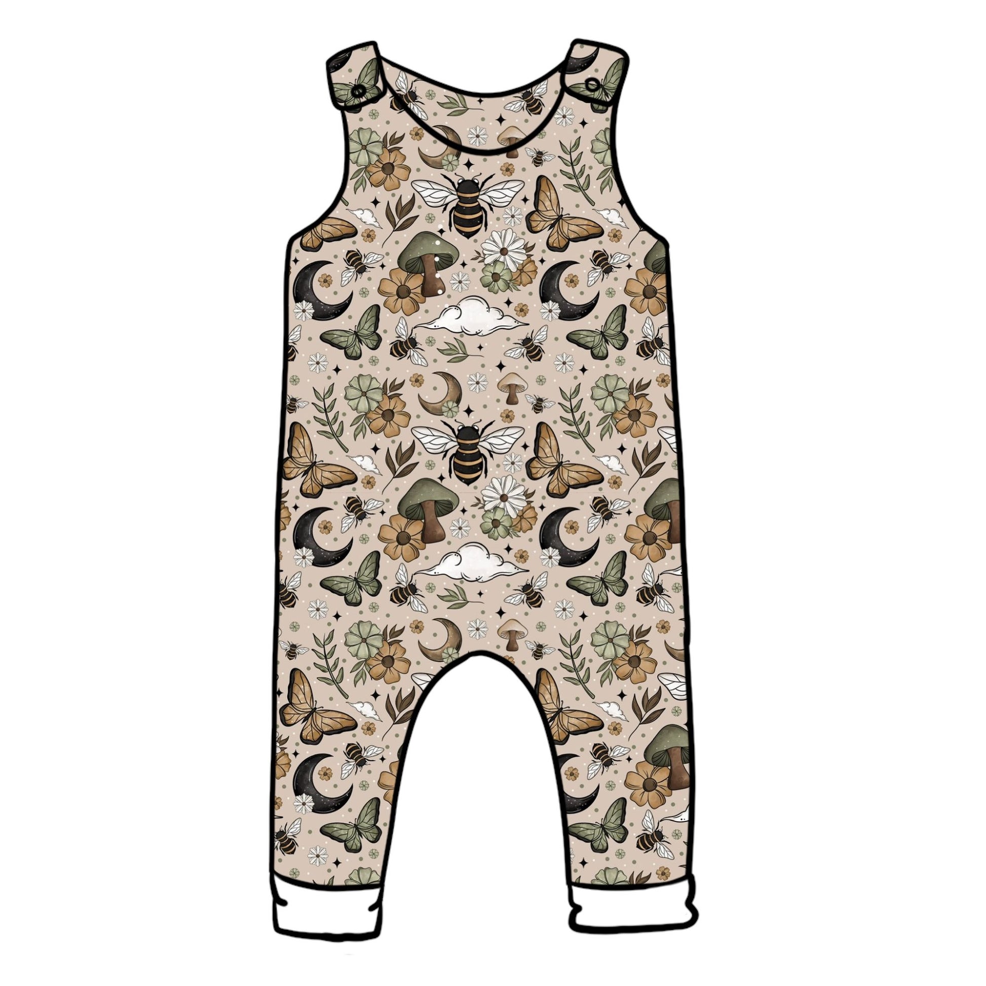 Let your little one play, explore, and relax in style with our Fall Bees print Baby & Children's Full Length Romper. Featuring a whimsical print with hand-drawn bees, butterflies, mushrooms, and autumn florals. it’s ideal for outdoor adventures, playful days out, or cosy moments at home.