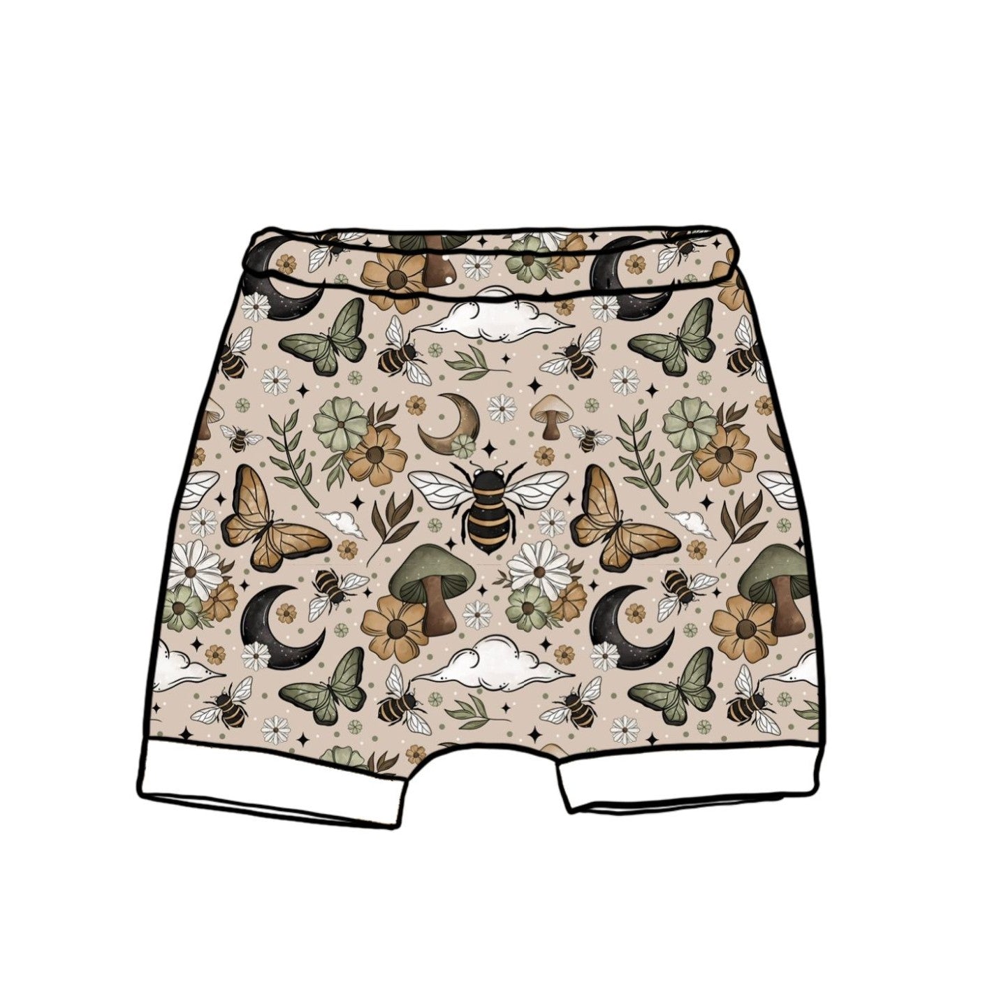Add a touch of nature-inspired charm to your little one’s wardrobe with our Fall Bees print Baby and Children's Rolled Shorts, featuring a whimsical Fall Bees print with hand-drawn bees, butterflies, mushrooms, and autumn florals.
