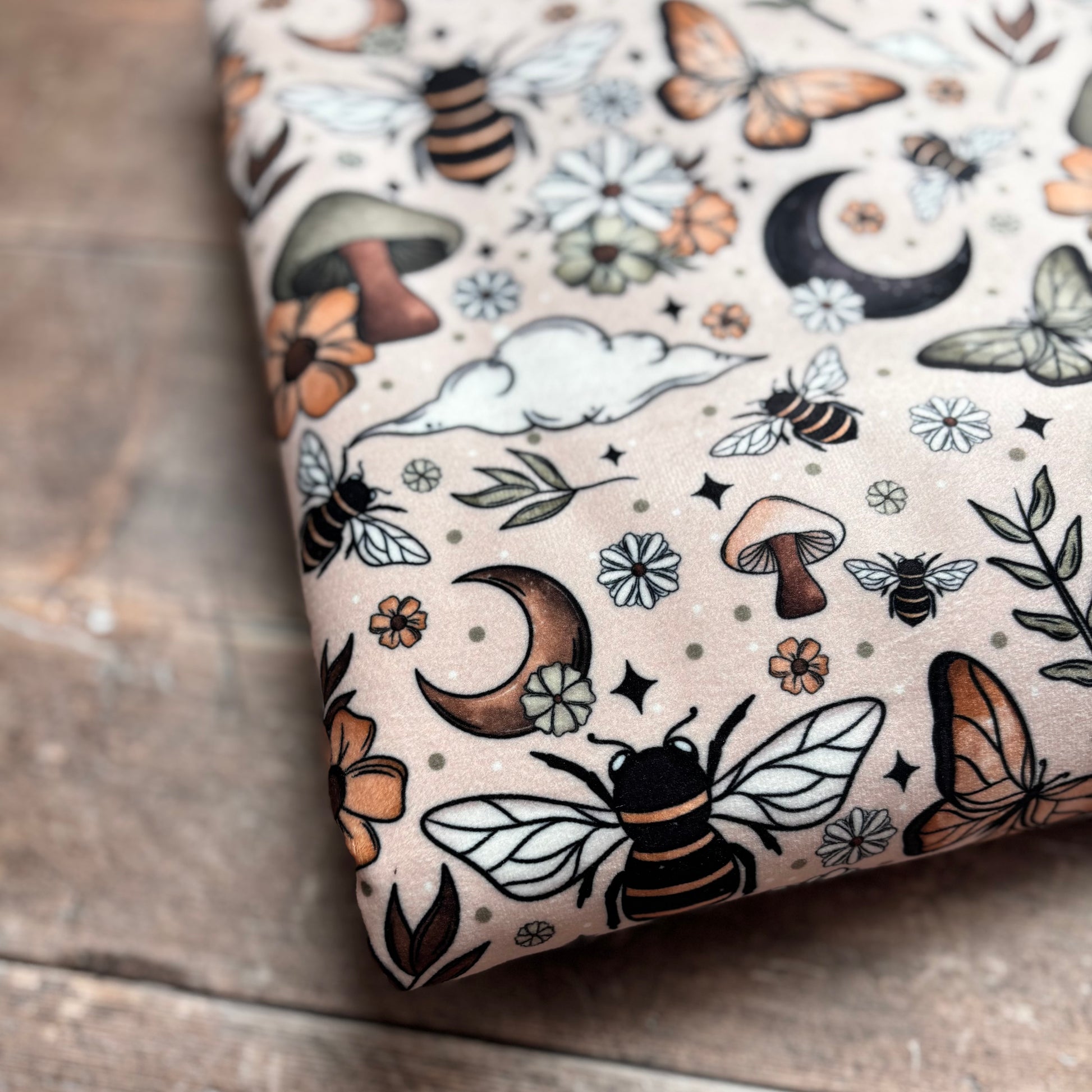 Keep your little one warm and cosy with our luxuriously thick soft Fall Bees print Children's Blanket, beautifully adorned with a whimsical hand-drawn bees, butterflies, mushrooms, and autumn florals. This beautiful blanket features a gorgeous print on one side and a soft cosy sherpa fleece on the back. Its perfect for the colder weather and keeping the family warm and toasty.