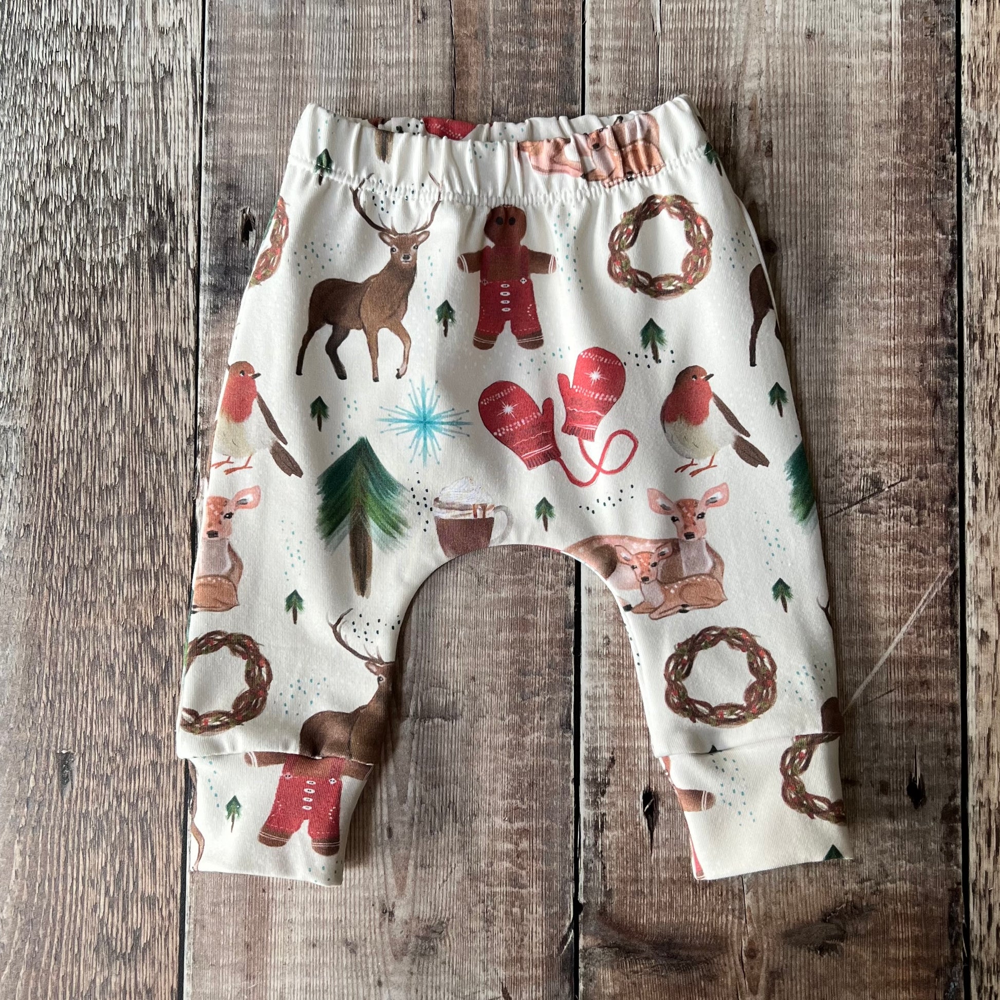 All harems feature a no-fold waistband and are cut for both cloth and disposable nappies, giving your little one the free to wriggle, crawl or run about. Sizing guides can be found here.
