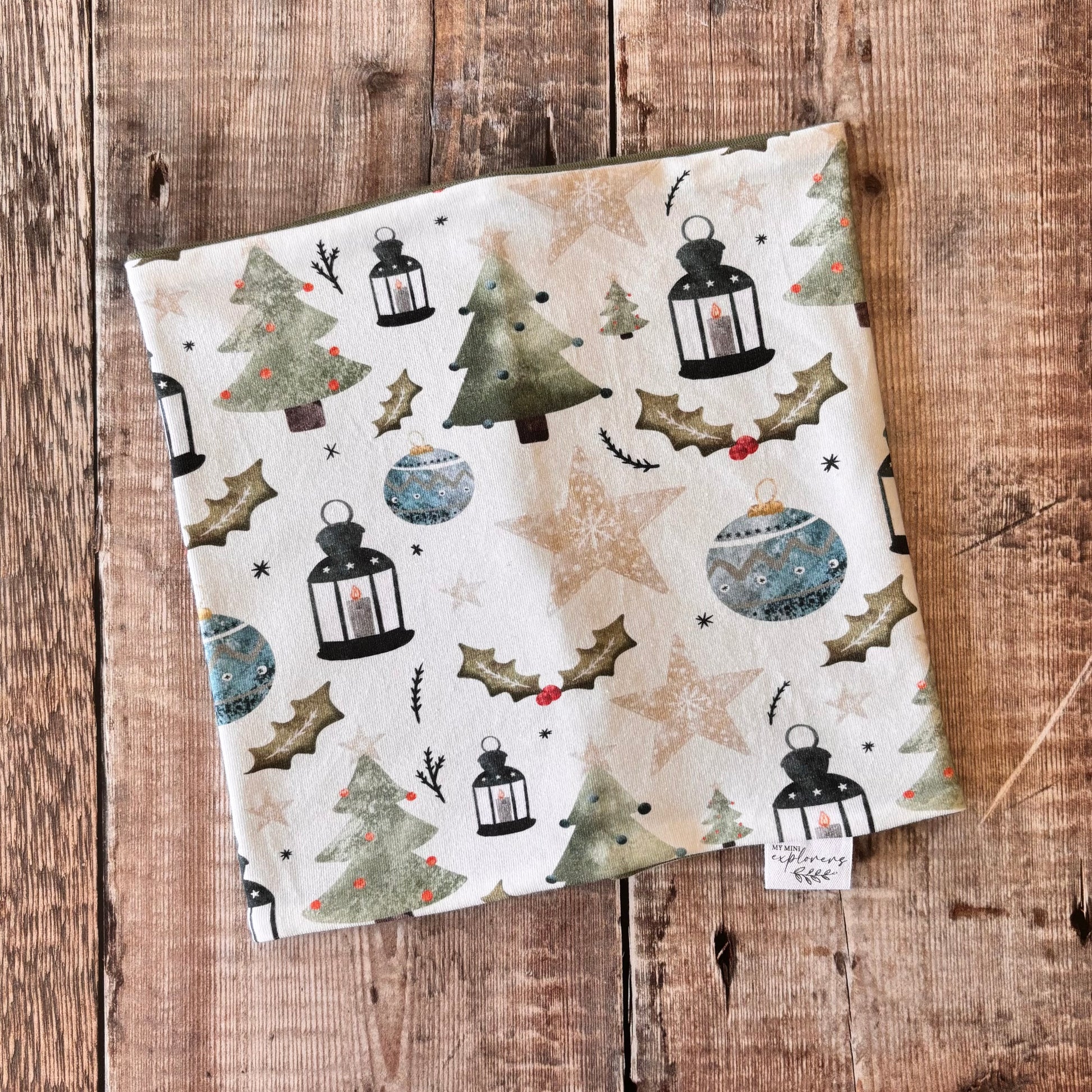 Keep your little one warm in style with a snug snood. They are great for finishing off their little outfits too. Handmade from soft cotton jersey on one side and organic cotton stretchy rib knit on the other (choose the solid colour below).