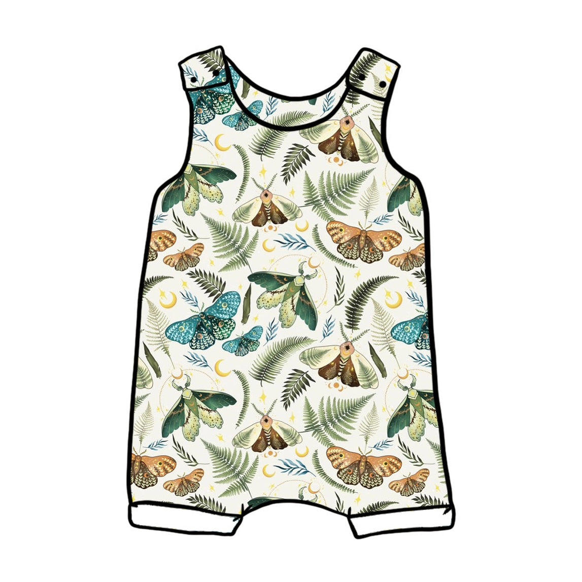 Beautifully handmade from organic cotton jersey knit. All rompers feature metal fasteners at each shoulder. Rompers are cut for both cloth and disposable nappies, giving your little one the freedom to wriggle, crawl or run about.