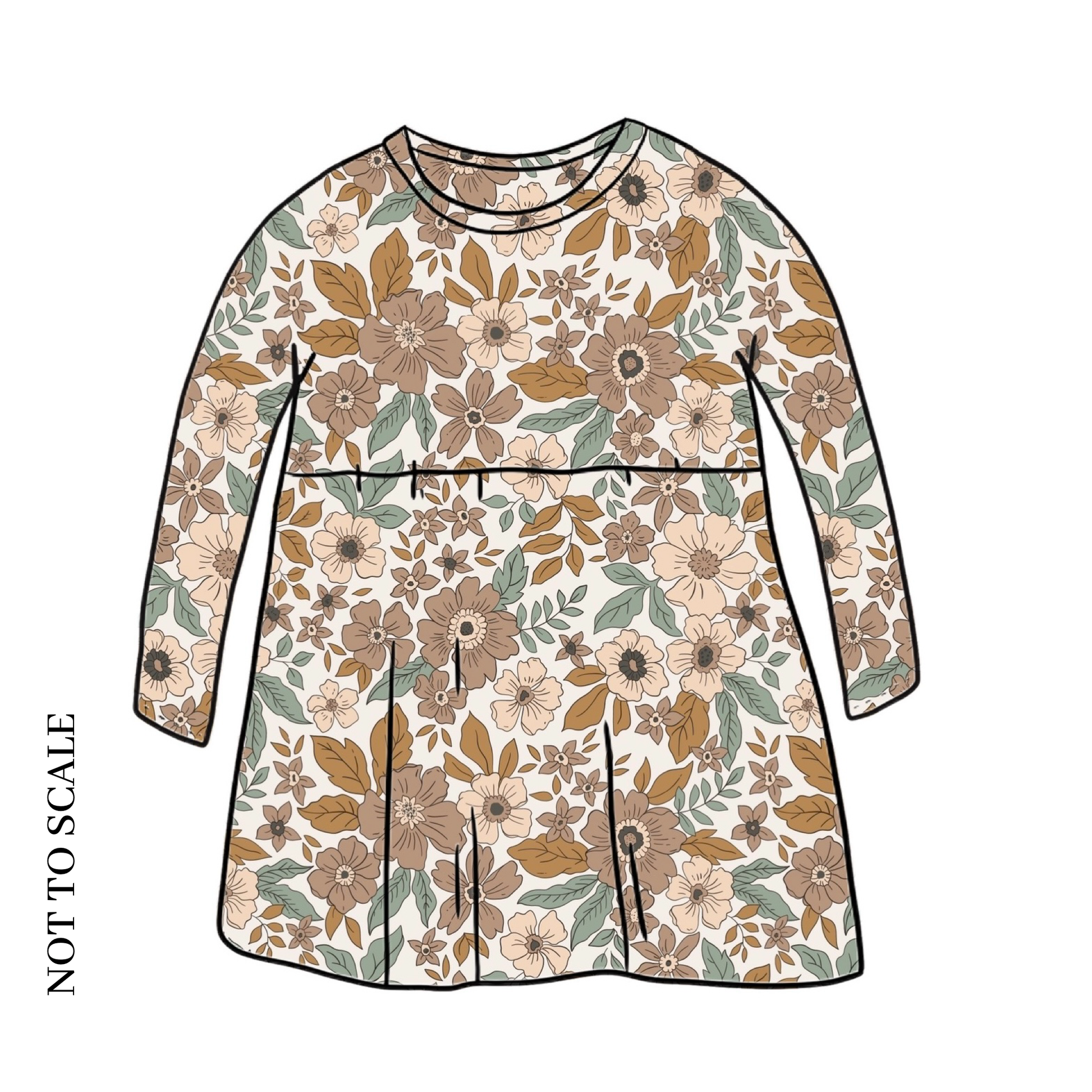 Made from soft, breathable organic cotton, this charming dress features a beautiful folk-inspired floral print in soothing shades of mink brown, sage green, and soft earth tones. With its long sleeves and relaxed, comfortable fit, it’s an easy-to-wear outfit for babies and toddlers that blends timeless, vintage-inspired style with cosy, effortless comfort.