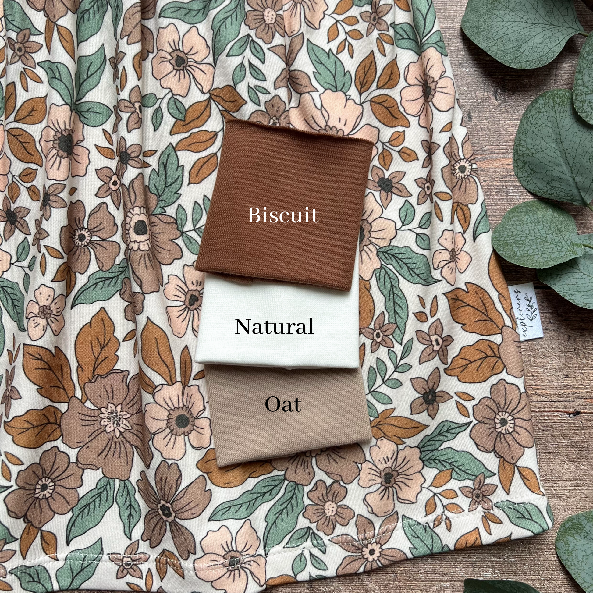 Handmade leggings, rompers, dresses and accessories - All items that I hand make are made from 95% organic cotton / 5% elastane, giving your mini explorers lots of room to explore and stretch. The only exceptions to this are our blankets which are 100% polyester making them super soft and cosy.