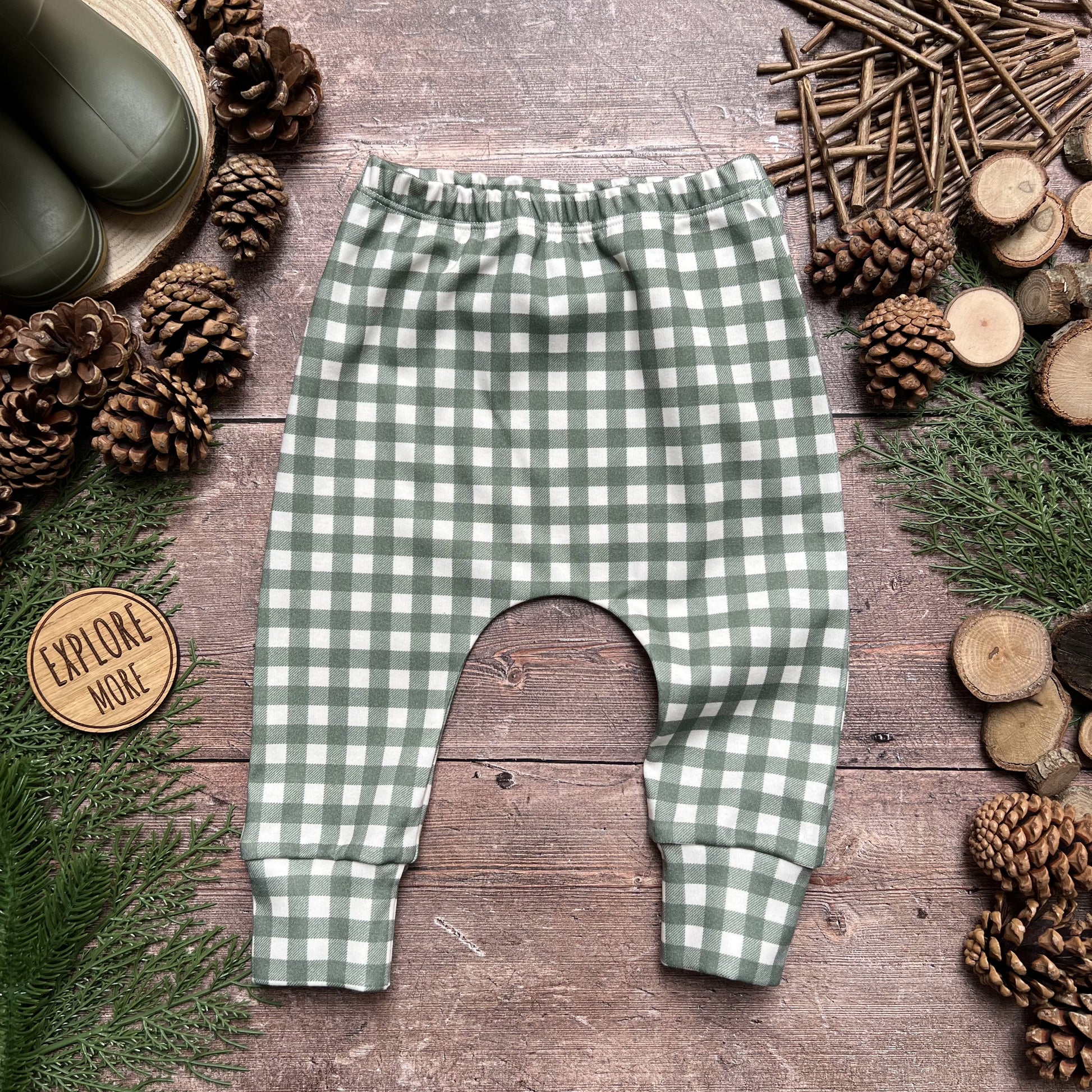 All harems feature a no-fold waistband and are cut for both cloth and disposable nappies, giving your little one the free to wriggle, crawl or run about. Sizing guides can be found here.