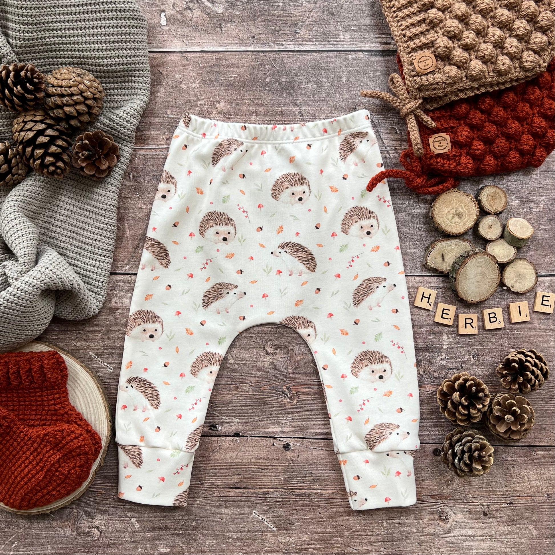 Handmade leggings, rompers, dresses and accessories - All items that I hand make are made from 95% organic cotton / 5% elastane, giving your mini explorers lots of room to explore and stretch. The only exceptions to this are our blankets which are 100% polyester making them super soft and cosy.