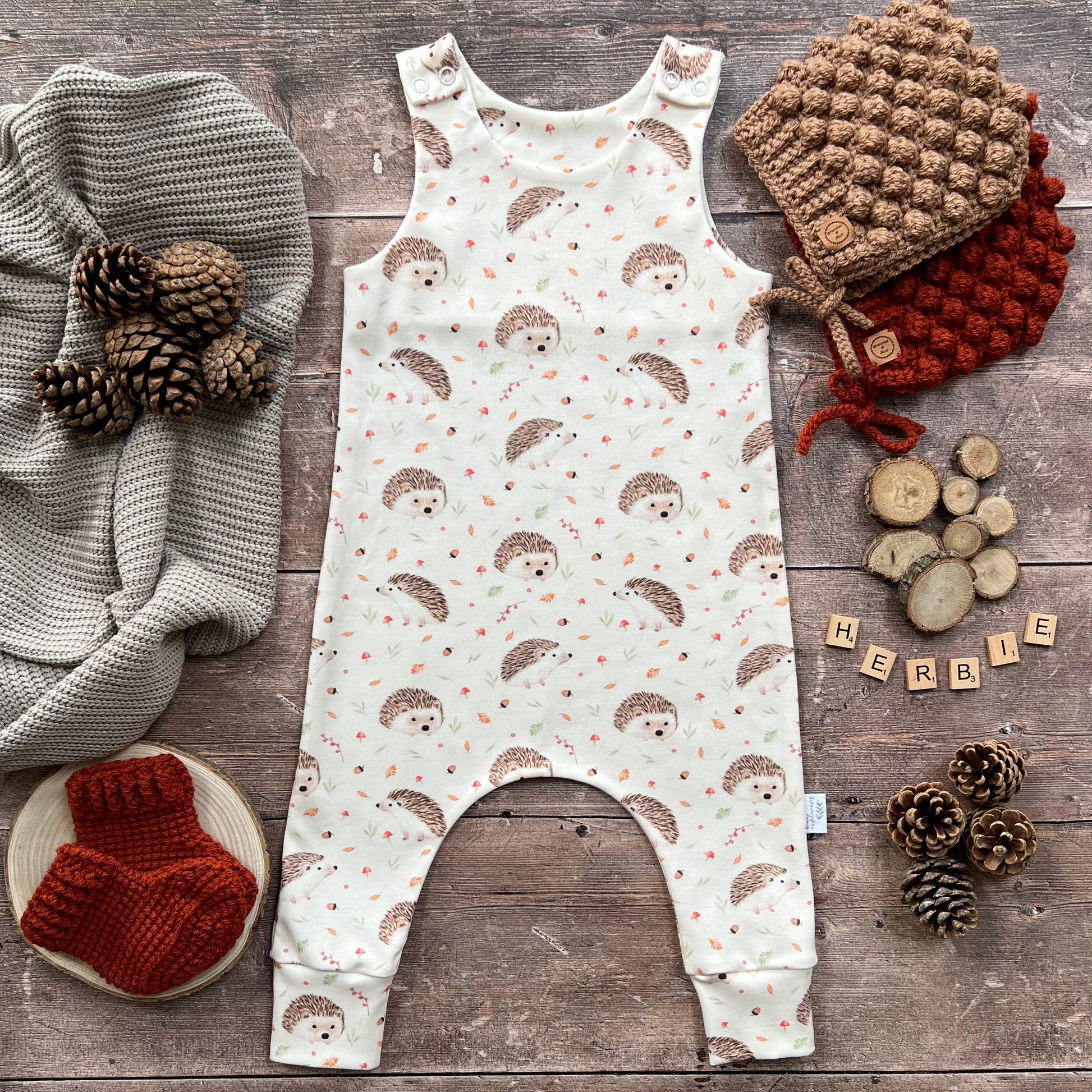 Beautifully handmade from organic cotton jersey knit. All rompers feature metal fasteners at each shoulder. Rompers are cut for both cloth and disposable nappies, giving your little one the freedom to wriggle, crawl or run about.