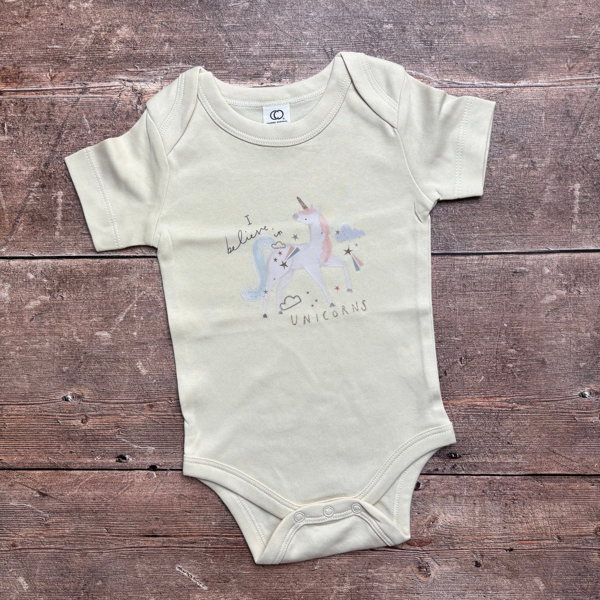 I believe in unicorns short sleeve bodysuit 3-6m (natural)
