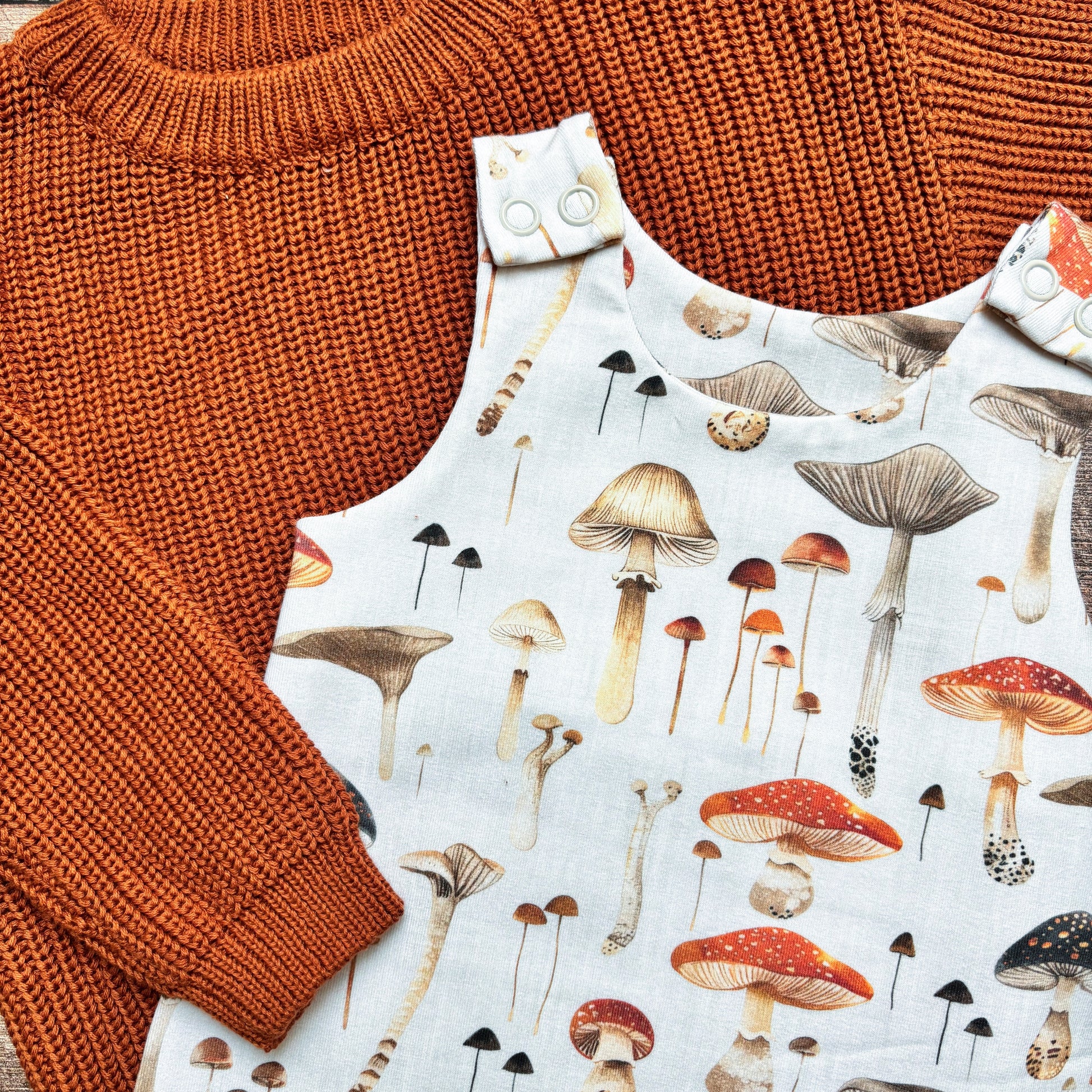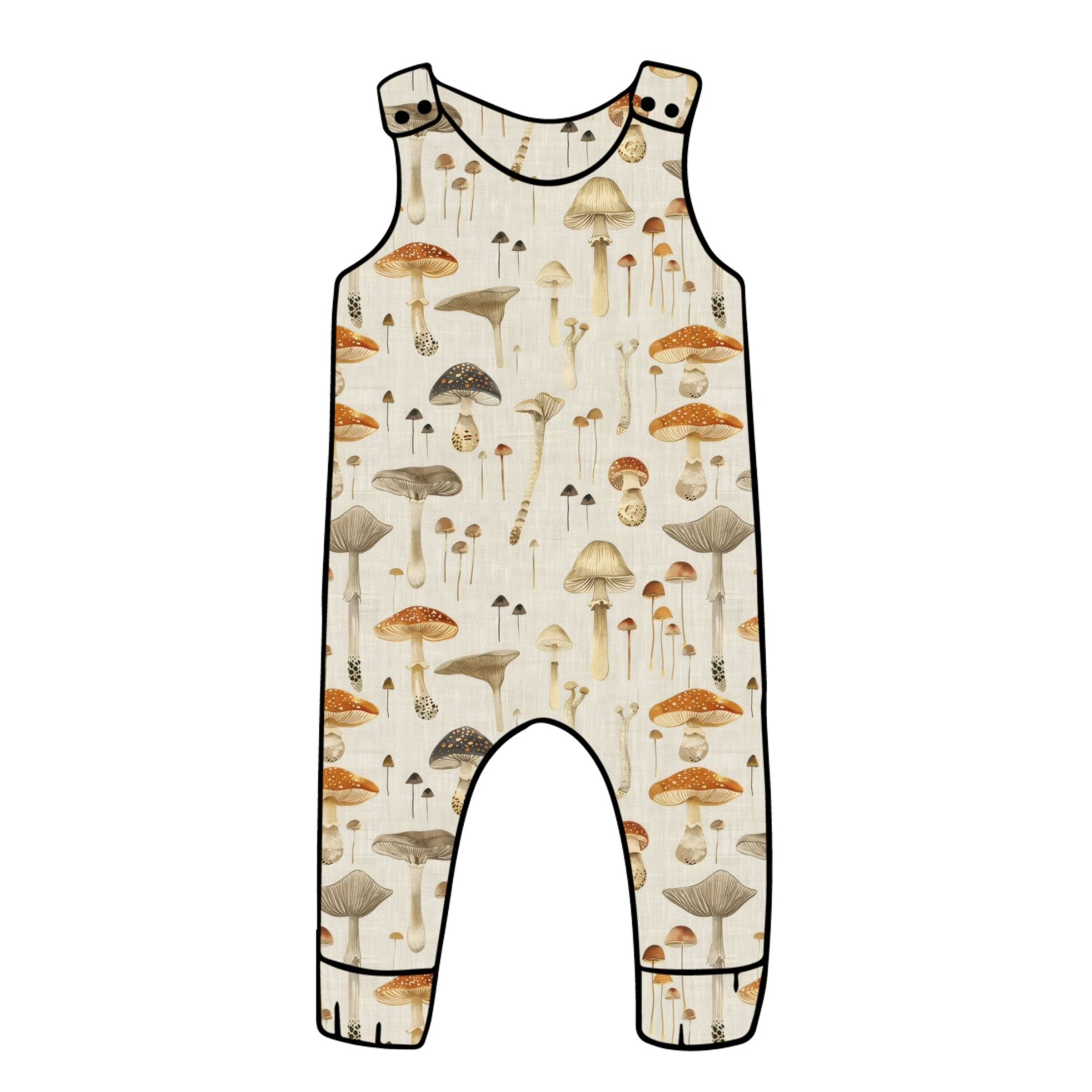 Let your little one play, explore, and relax in style with our Linen Mushrooms print Baby and Children's Full Length Romper. Featuring a vintage-inspired hand-drawn print of mushrooms and toadstools in warm, nature-inspired tones on a pale linen-look background, it’s ideal for outdoor adventures, playful days out, or cosy moments at home.
