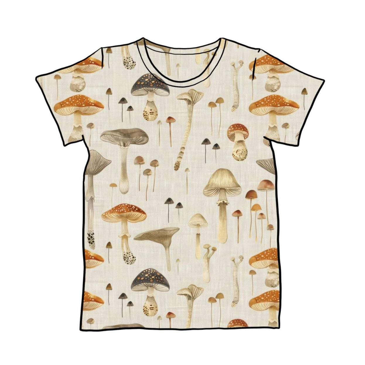Pretty and practical, our Linen Mushrooms Short Sleeve Baby and Children’s T-Shirt is perfect for everyday wear and woodland adventures. Made from soft organic cotton, it features a vintage-inspired hand-drawn print of mushrooms and toadstools in warm, nature-inspired tones on a pale linen-look background. With short sleeves and a relaxed, comfortable fit, this easy-going tee is ideal for playdates, park trips, and everything in between — a versatile essential for little explorers.