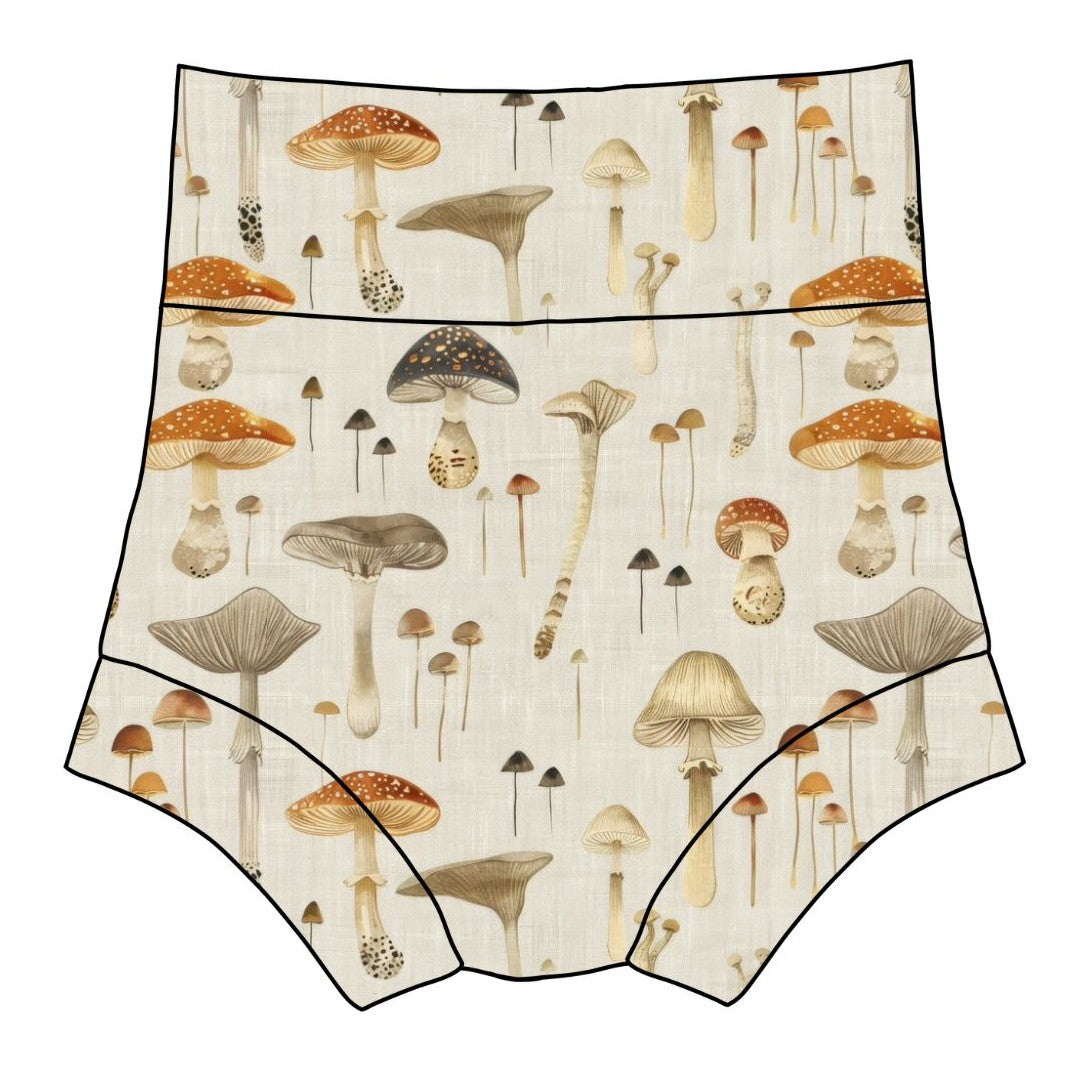 Add a touch of vintage woodland charm to your little one’s wardrobe with our Linen Mushrooms Baby and Children's Yoga Style Bloomer Shorts. Featuring a hand-drawn collage of mushrooms and toadstools in warm, nature-inspired tones on a pale linen-look background, this print is perfect for outdoor adventures, playful days out, or cosy moments at home.