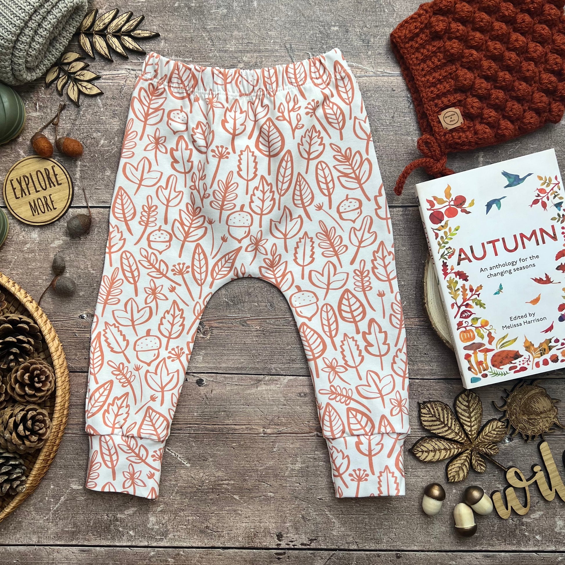 All harems feature a no-fold waistband and are cut for both cloth and disposable nappies, giving your little one the free to wriggle, crawl or run about. Sizing guides can be found here.