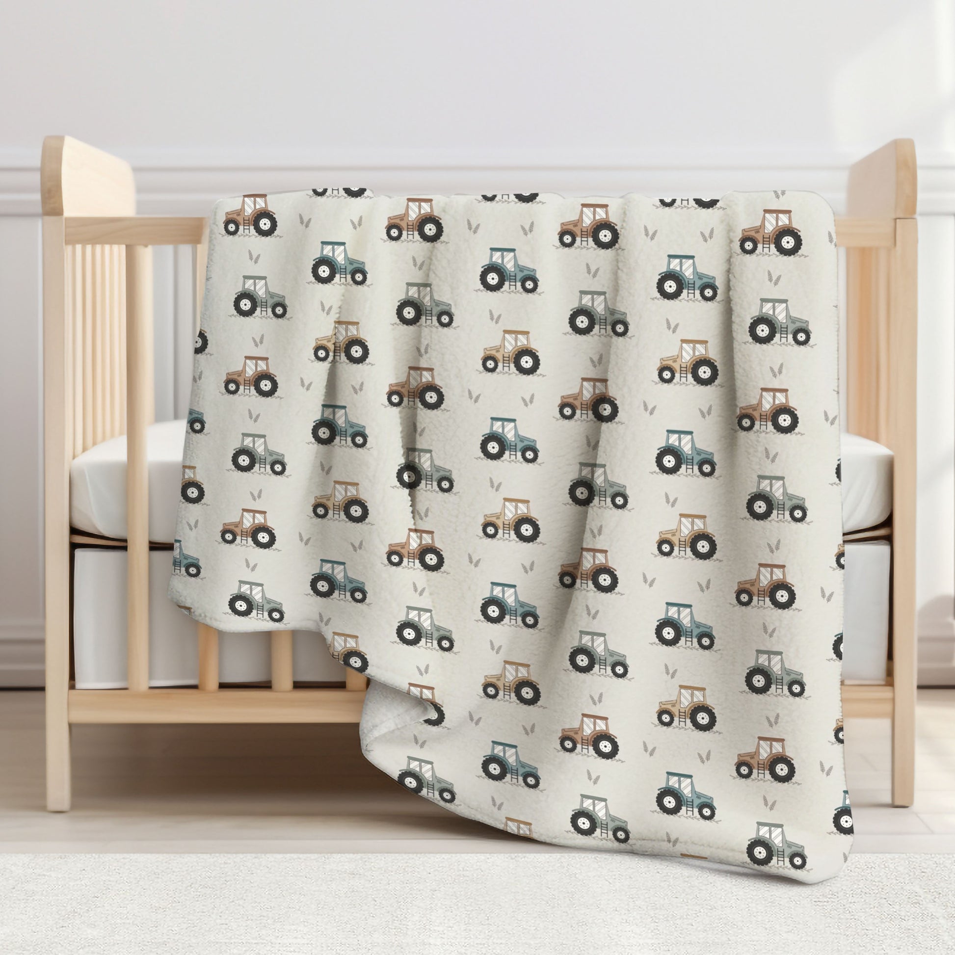 Keep your little one warm and cosy with our luxuriously thick soft Little Tractor print Children's Blanket, finished with a warm, rustic tractor pattern. This beautiful blanket features a gorgeous print on one side and a soft cosy sherpa fleece on the back. Its perfect for the colder weather and keeping the family warm and toasty.