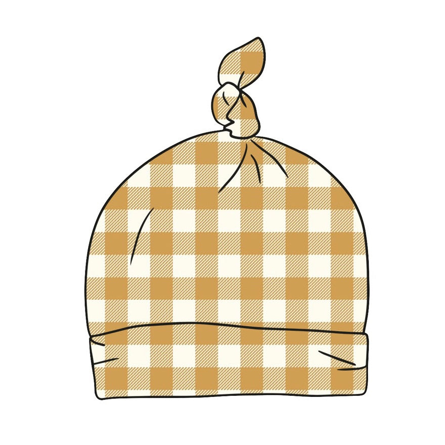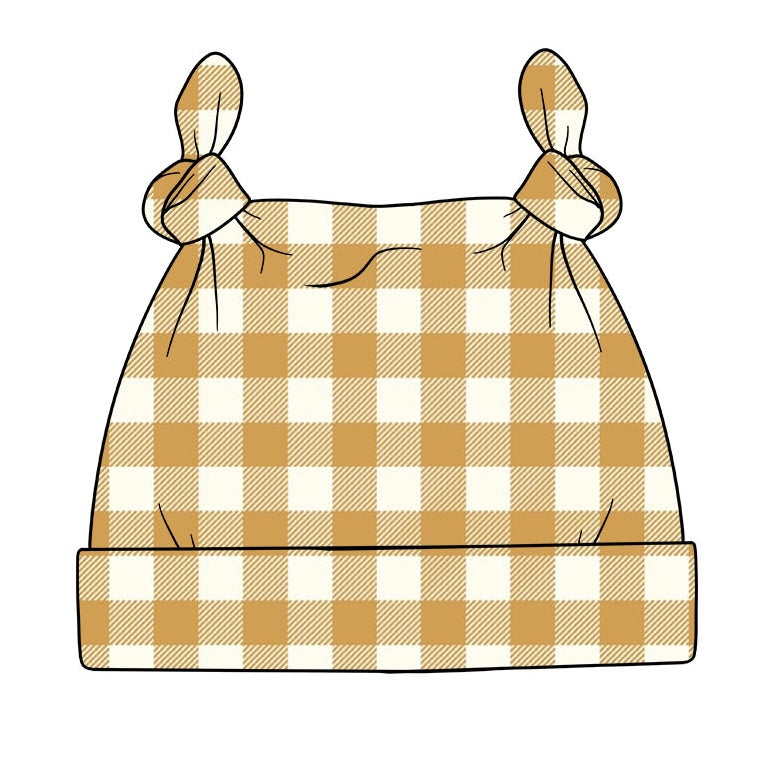 Ochre Gingham Knotted Hat