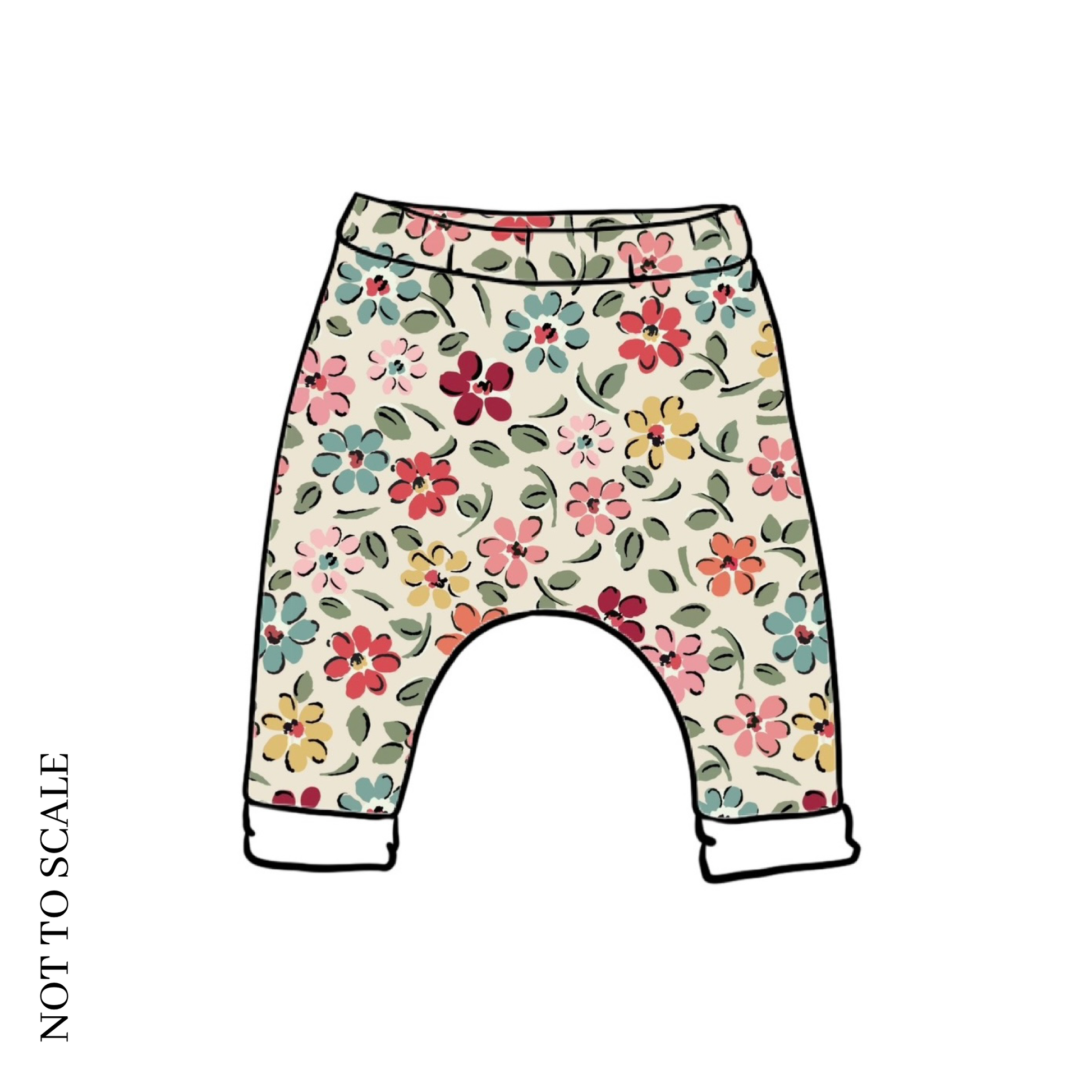 All harems feature a no-fold waistband and are cut for both cloth and disposable nappies, giving your little one the free to wriggle, crawl or run about. Sizing guides can be found here.
