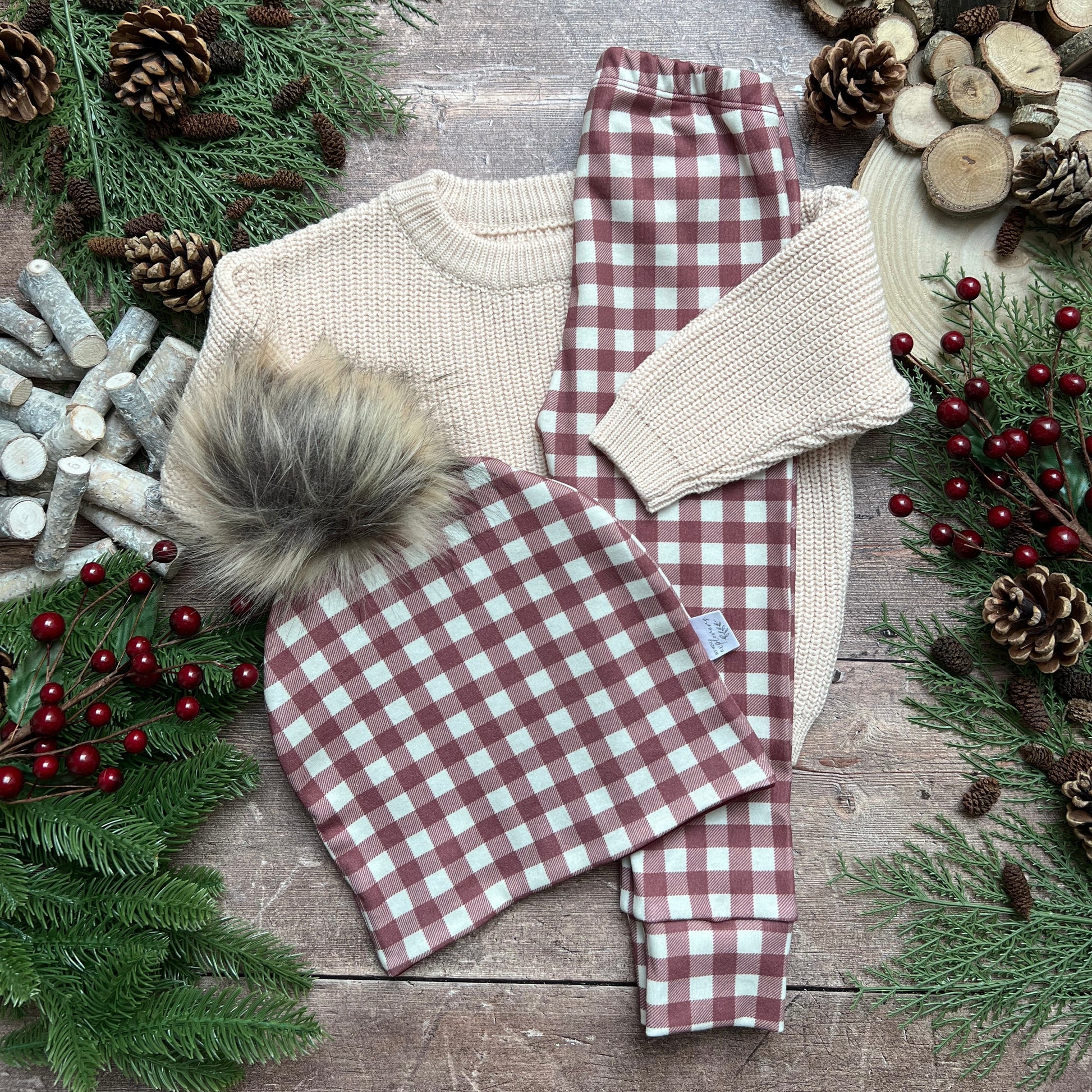 Handmade from soft cotton jersey. The inside is made from the softest rib knit and can be colour co-ordinated. Topped with faux fur detachable Pom Pom.