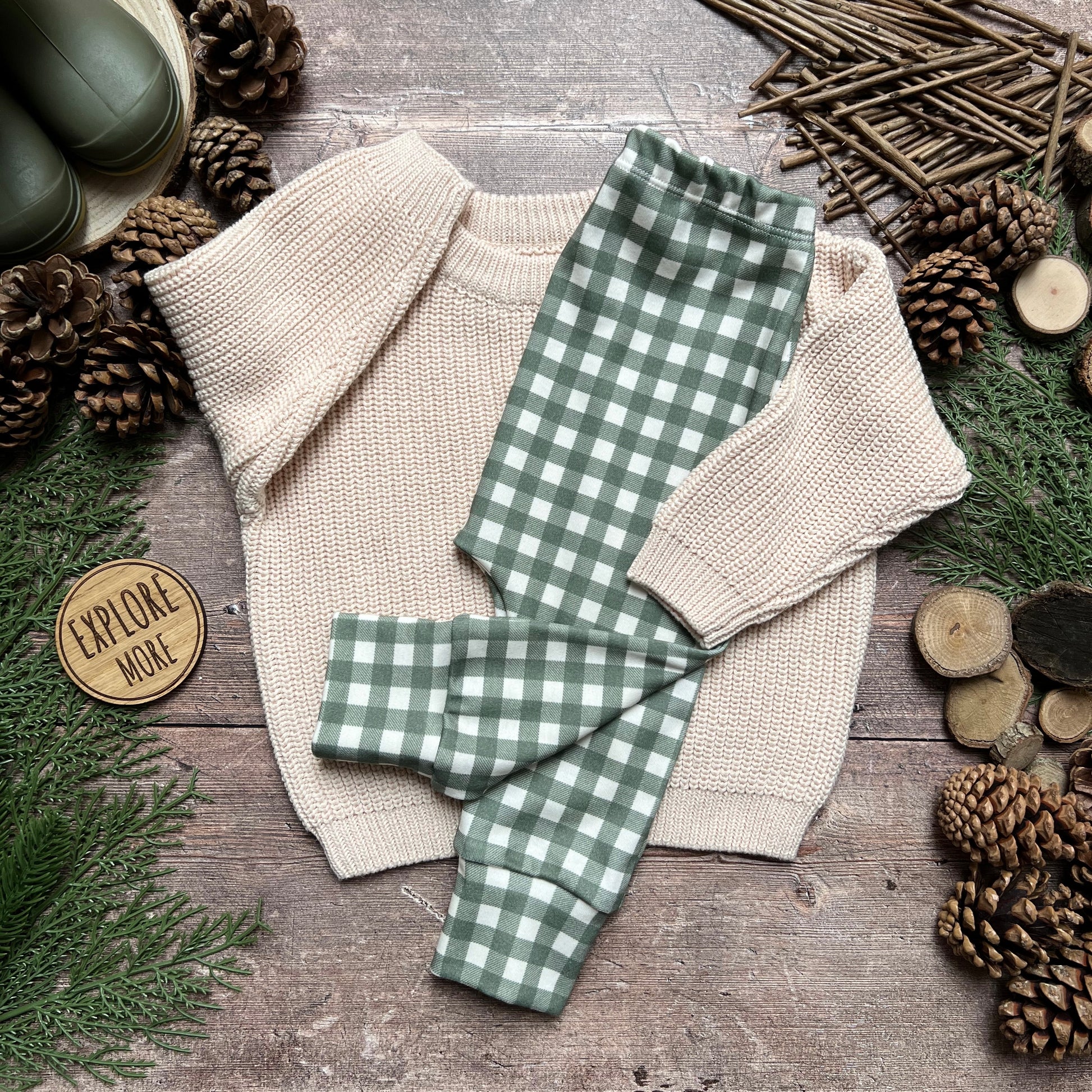 Handmade leggings, rompers, dresses and accessories - All items that I hand make are made from 95% organic cotton / 5% elastane, giving your mini explorers lots of room to explore and stretch. The only exceptions to this are our blankets which are 100% polyester making them super soft and cosy.