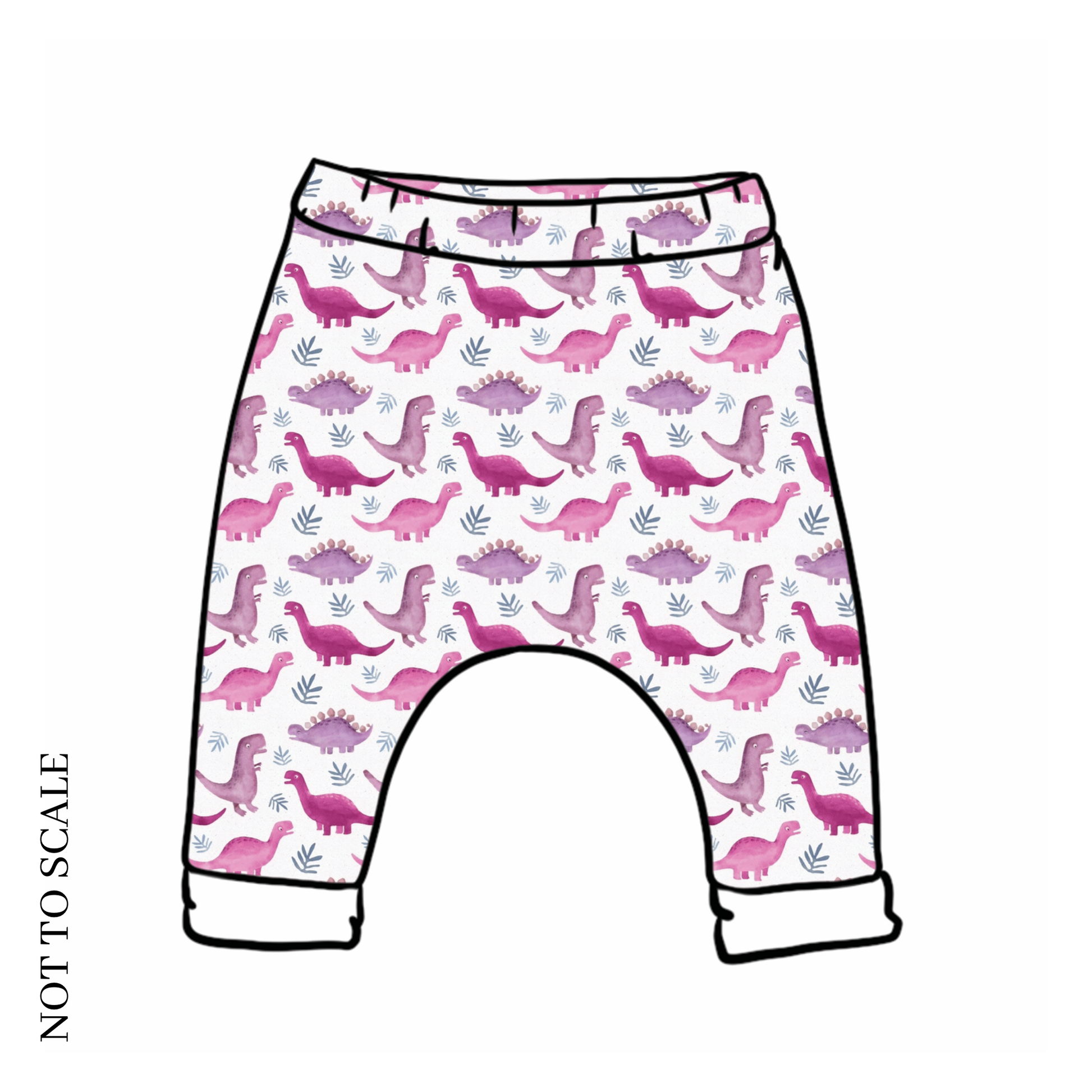 All harems feature a no-fold waistband and are cut for both cloth and disposable nappies, giving your little one the free to wriggle, crawl or run about. Sizing guides can be found here.