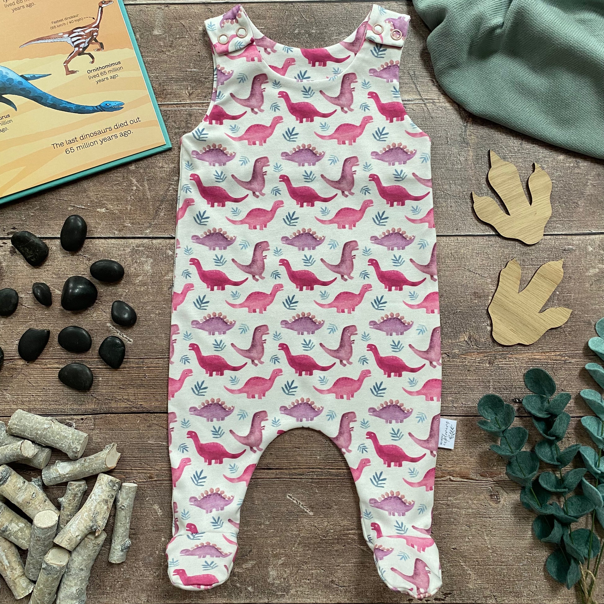 Pink Dinos Footed Romper 3-6m