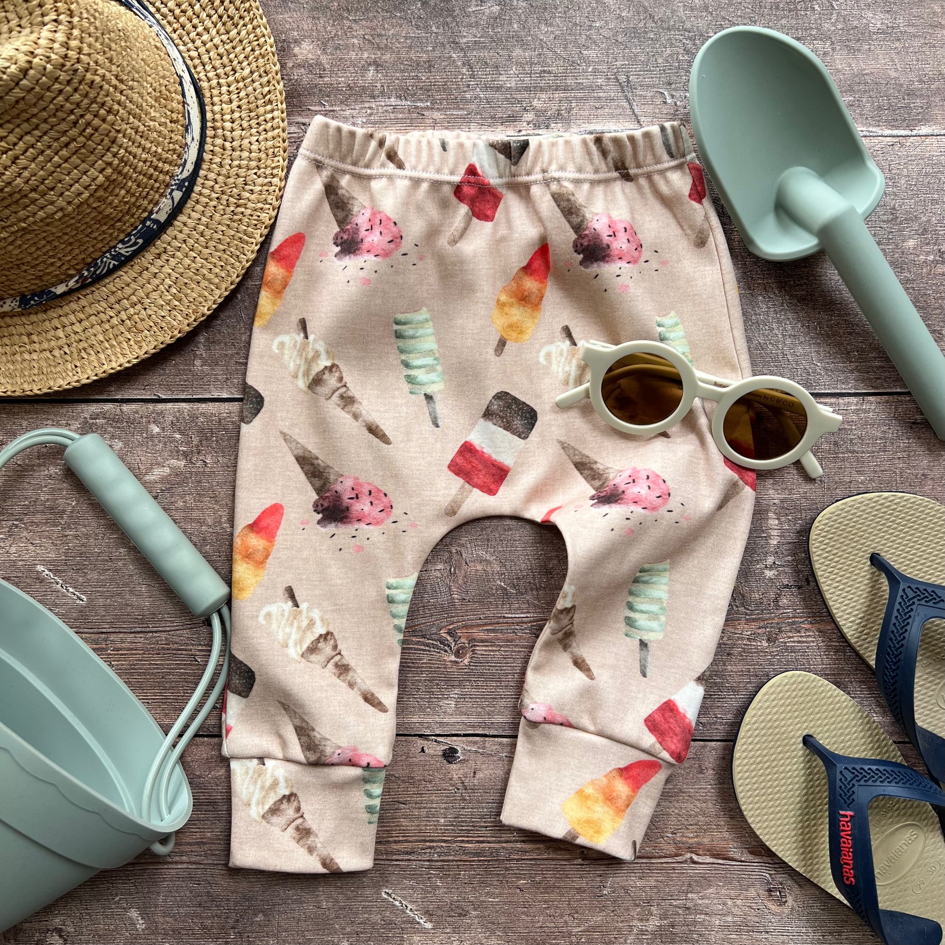 All harems feature a no-fold waistband and are cut for both cloth and disposable nappies, giving your little one the free to wriggle, crawl or run about. Sizing guides can be found here.