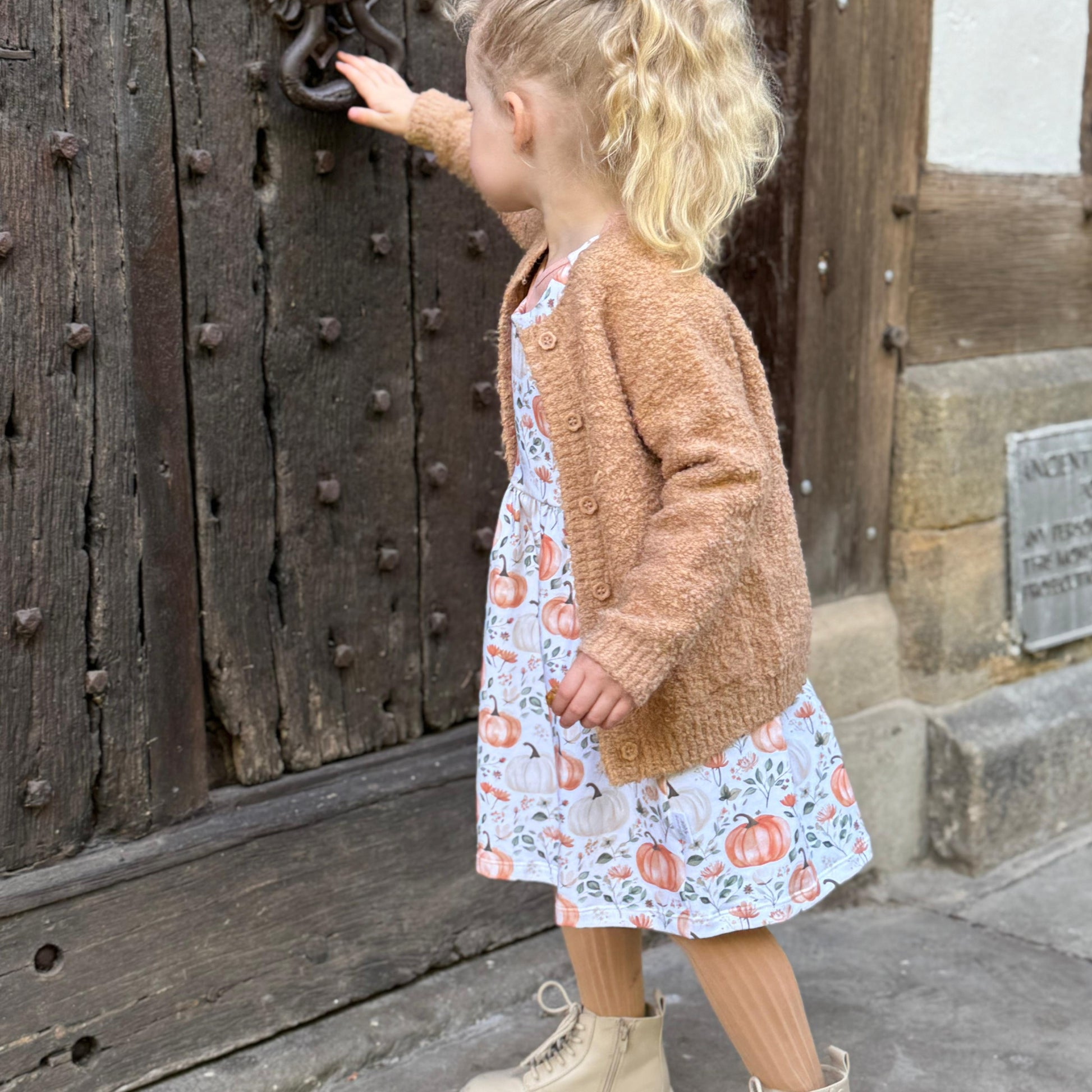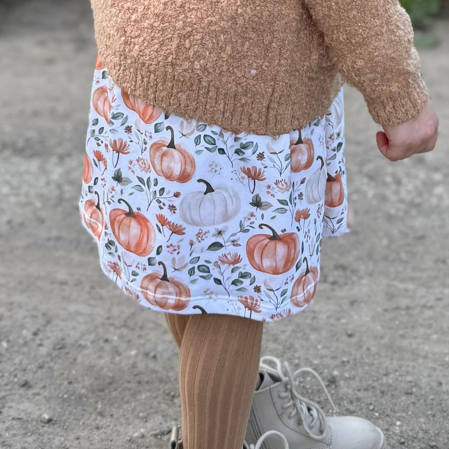 Made from soft, breathable organic cotton, this adorable baby dress features our Pumpkin Patch print — a delicate watercolour design in warm autumnal tones of burnt orange, soft green, cream, and beige. Perfect for pumpkin picking, family outings, and special seasonal moments, it’s a timeless piece for any little one’s wardrobe.