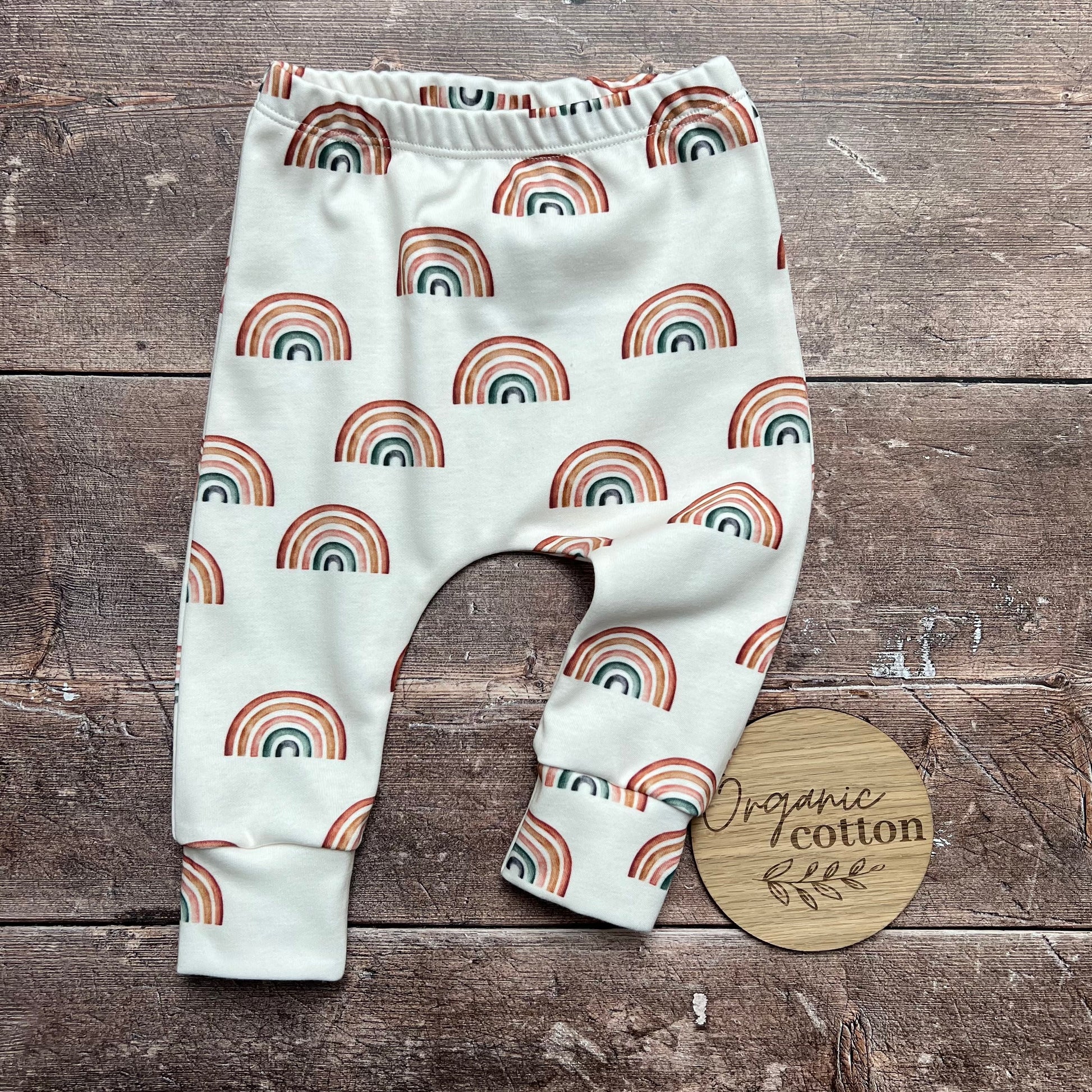 All harems feature a no-fold waistband and are cut for both cloth and disposable nappies, giving your little one the free to wriggle, crawl or run about. Sizing guides can be found here.